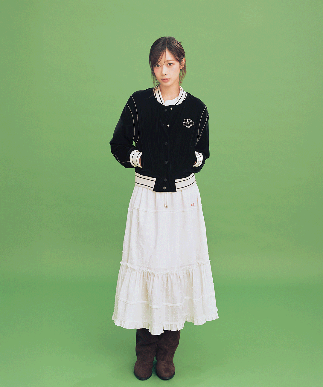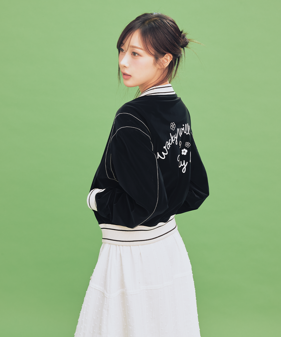 [GISELLE着用] WOMEN'S VELVET-LIKE VARSITY JACKET