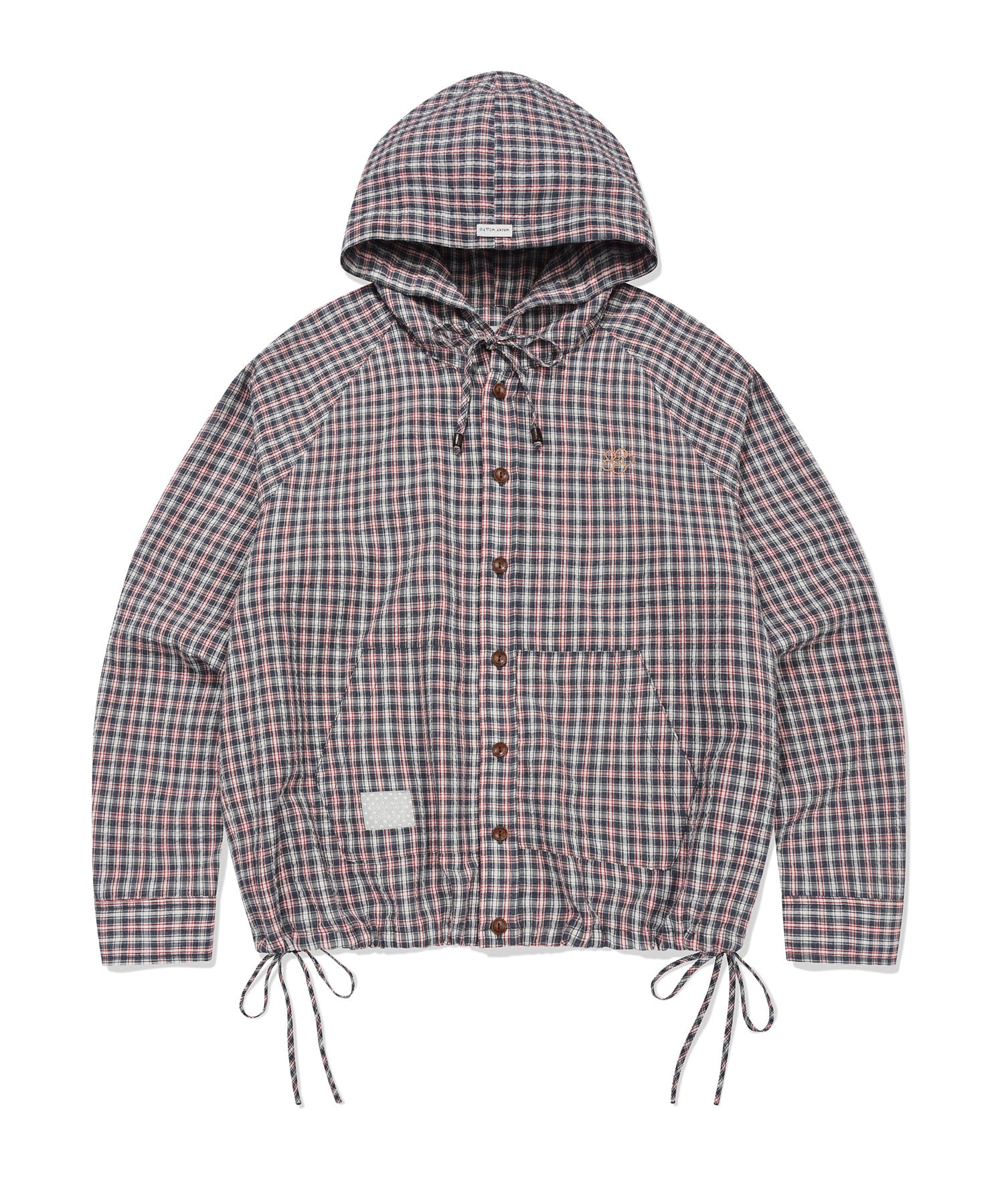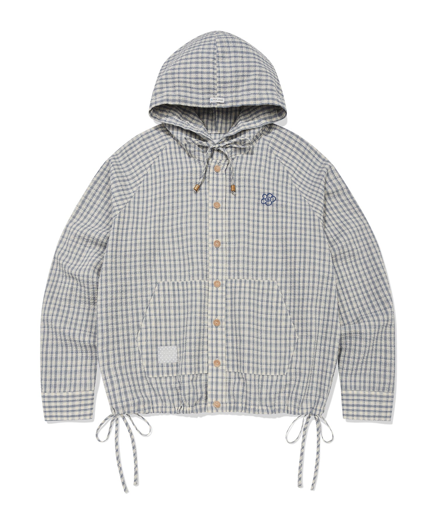 WOMEN'S CHECK SEERSUCKER HOODED SHIRT JUMPER