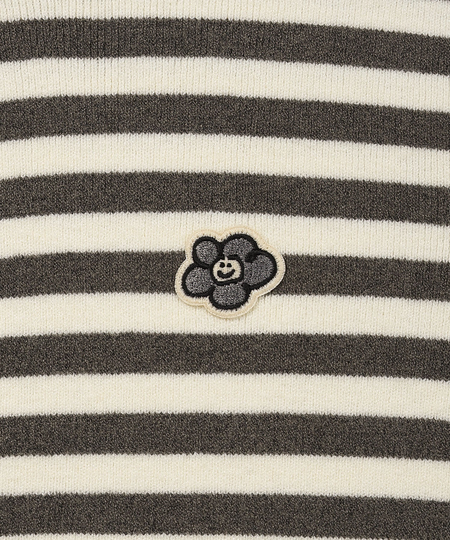 全体はストライプ調のカラー感でまとめ、トーンを揃えたリリー刺繍ワッペンをさりげないアクセントとしてプラスしました。