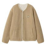 リバーシブル仕様のフリースと織物ジャケットを組み合わせた一枚です。
