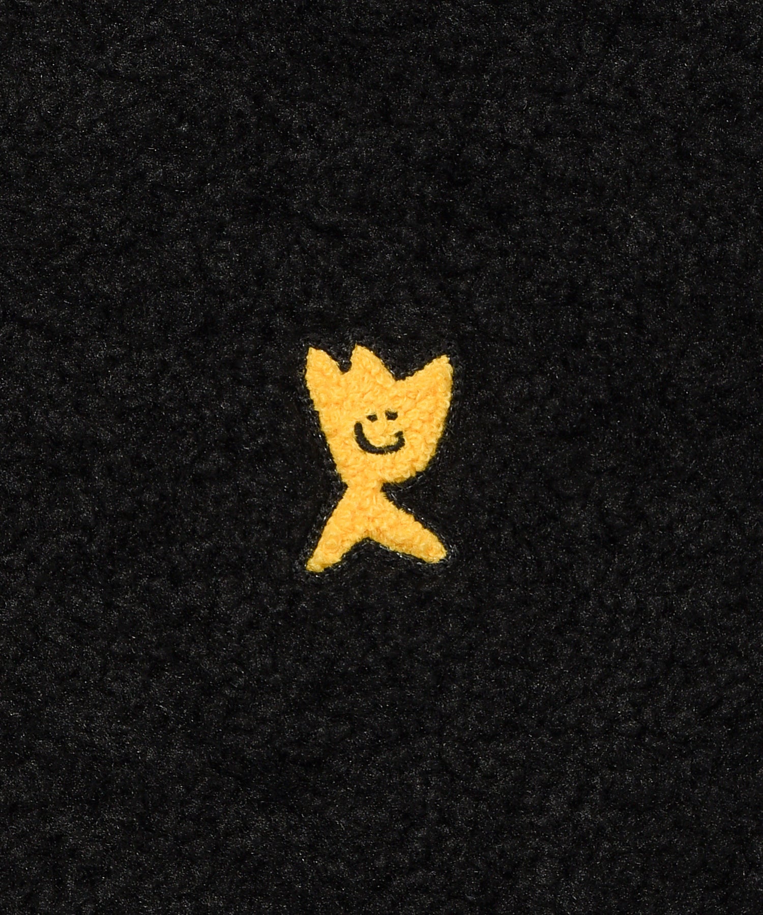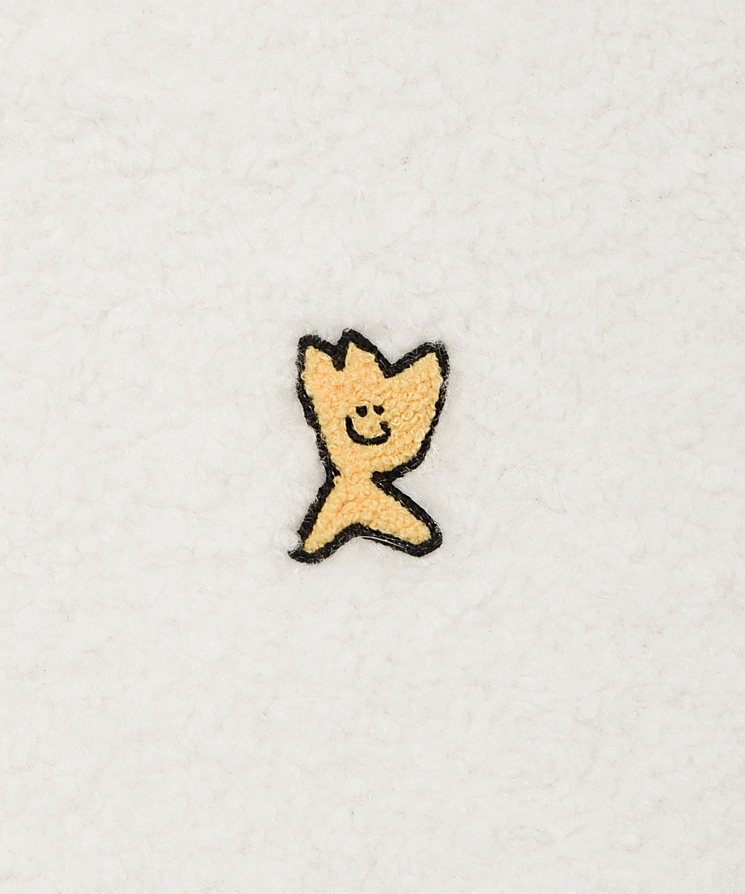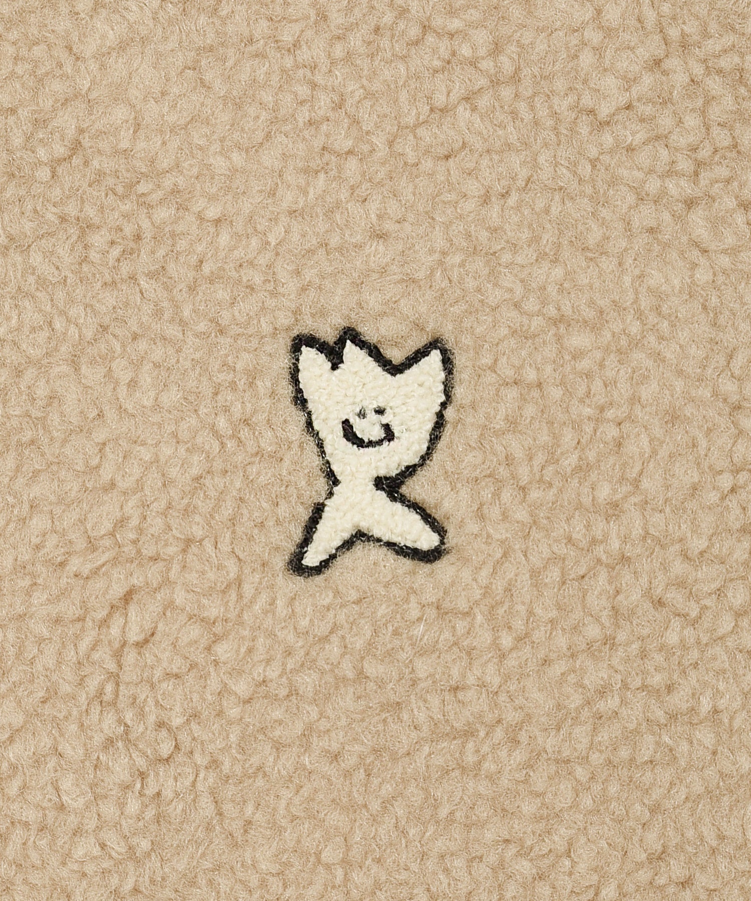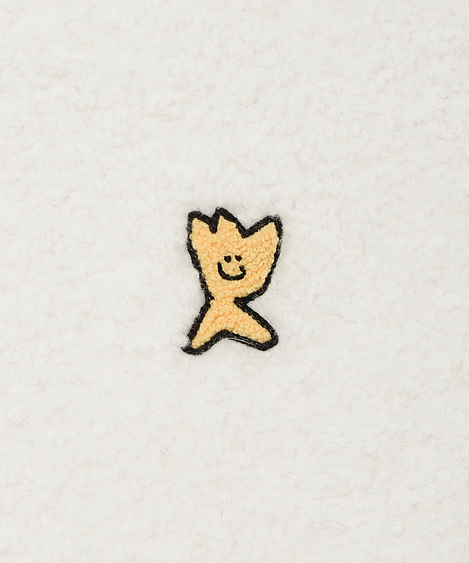 トーンオントーンのベーシックカラーでまとめ、フリース部分には表面に凹凸感のあるコットン素材の刺繍ワッペンをあしらいました。