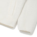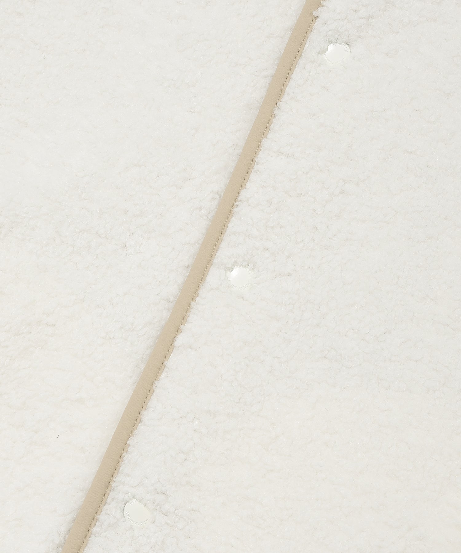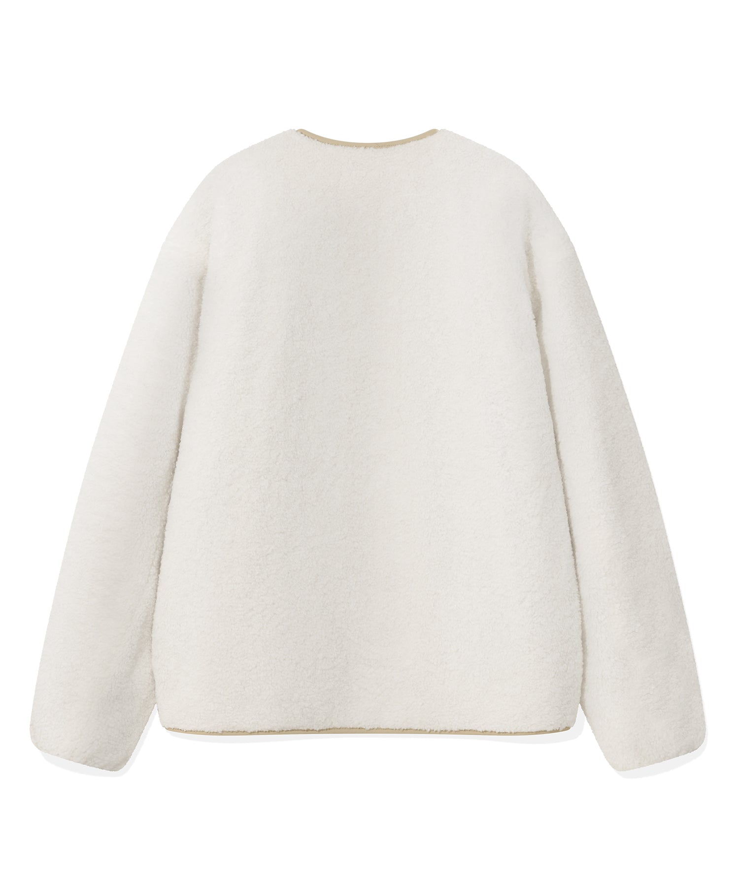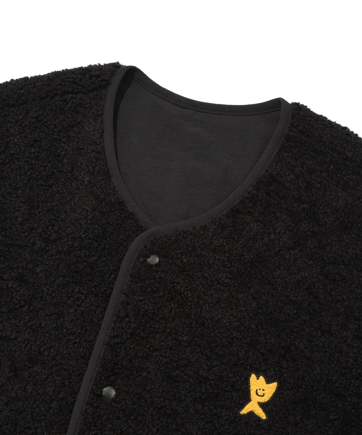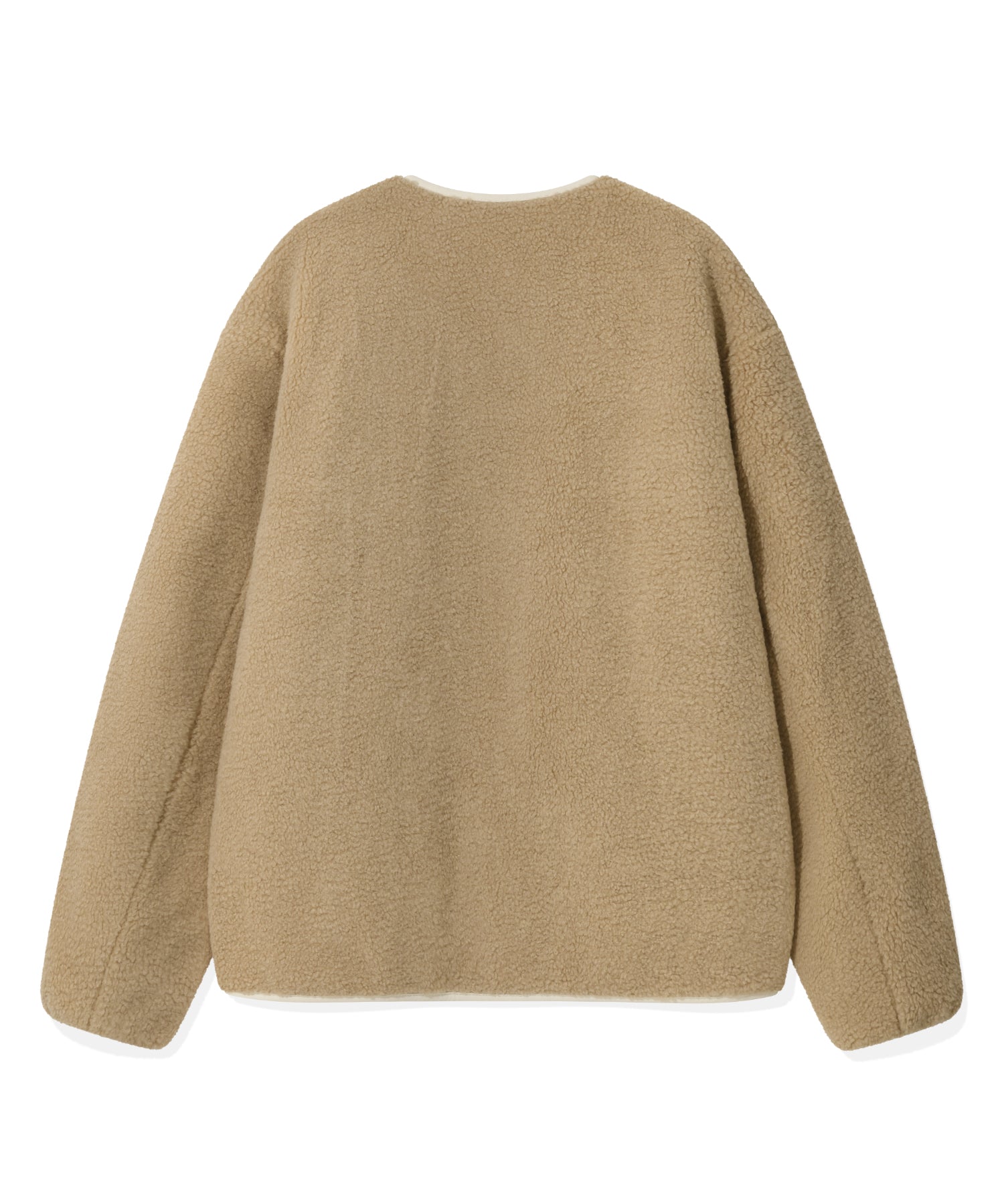 トーンオントーンのベーシックカラーでまとめ、フリース部分には表面に凹凸感のあるコットン素材の刺繍ワッペンをあしらいました。
