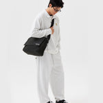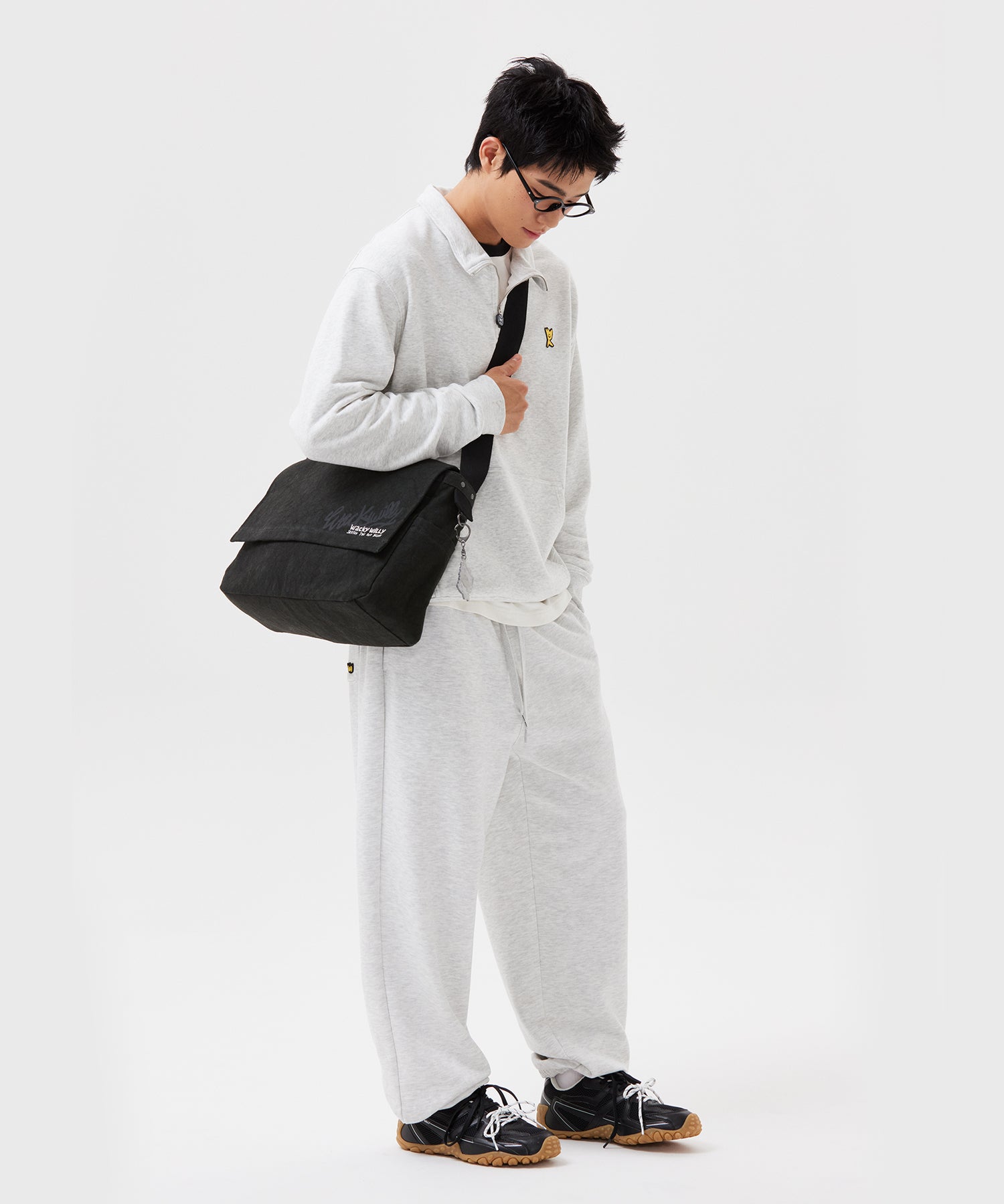 コットンポリエステル混のツイル素材を使用した、セミオーバーフィットのハーフジップアップスウェット。