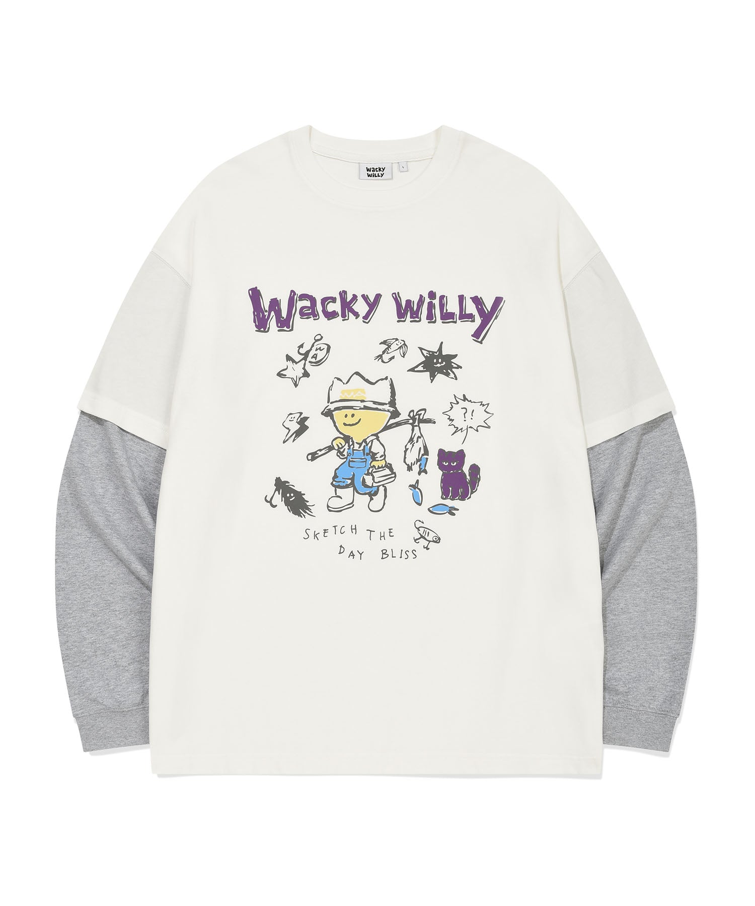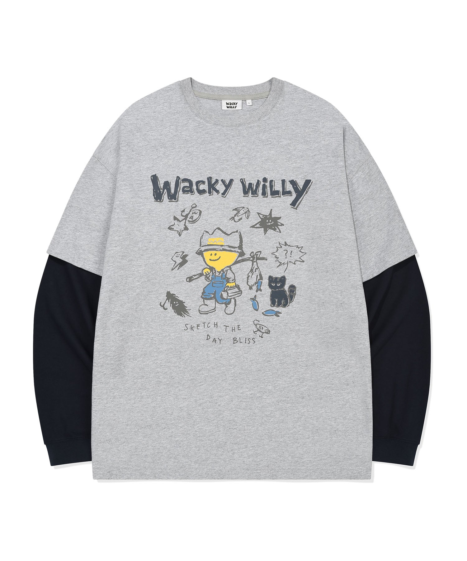 フロントにはグラフィックプリントを配置し、コーディネートのアクセントになっています。
