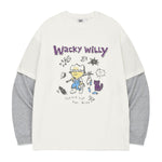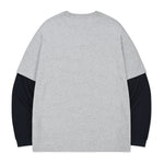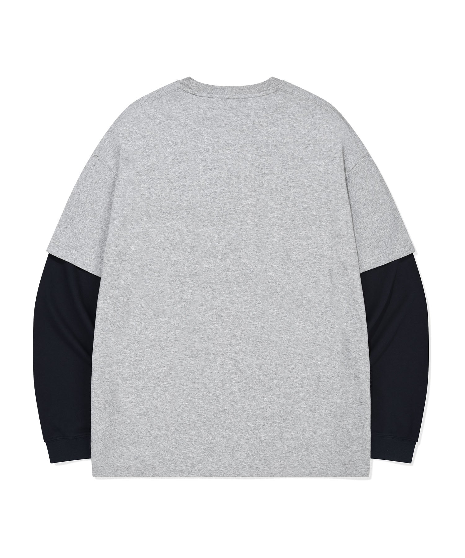 袖部分を配色で切り替えたレイヤード風のデザインが、一枚で着ても存在感を放ちます。