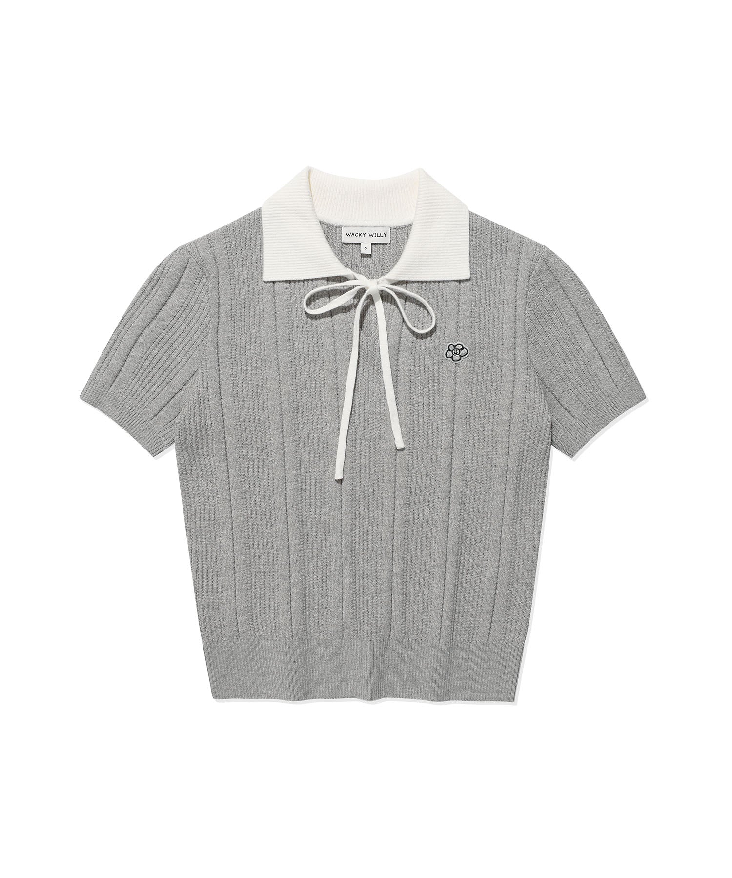 WOMEN'S RIBBON COLLAR SHORT SLEEVE KNIT