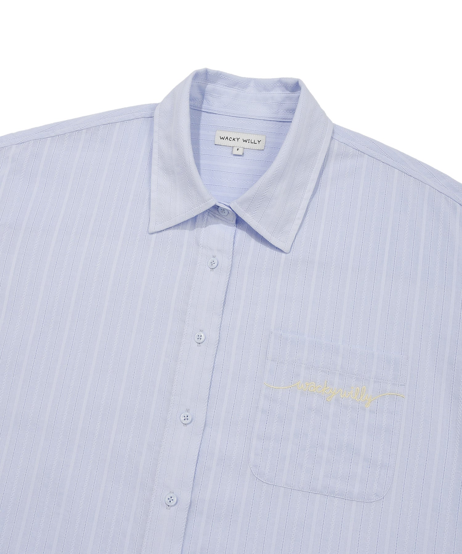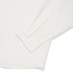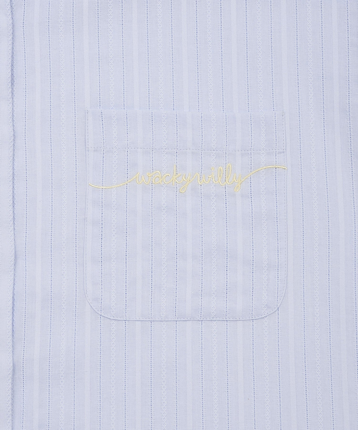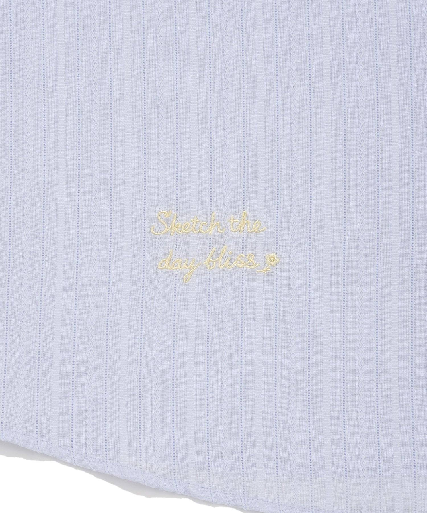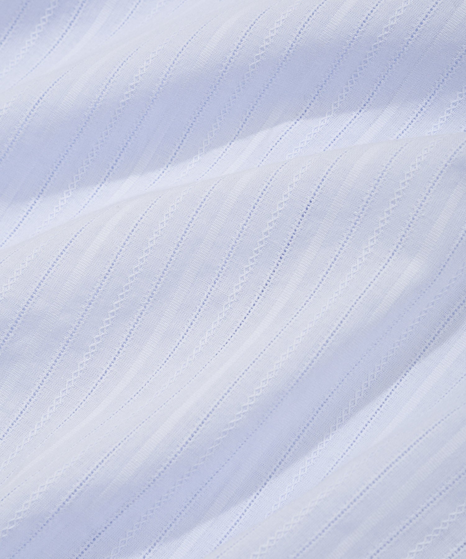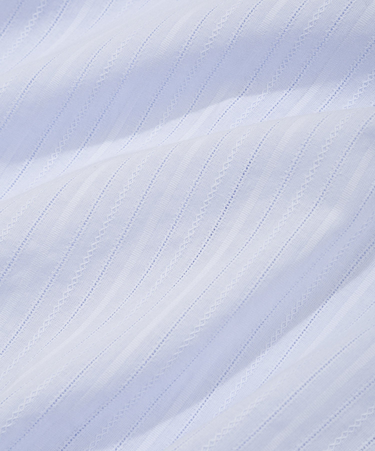 カラーによって異なる生地の表情が魅力で、ホワイト(WH)とスカイブルー(SB)は豊かな表面感(組織感)のある生地、ピンク(PI)は爽やかなストライプ柄を採用しました。