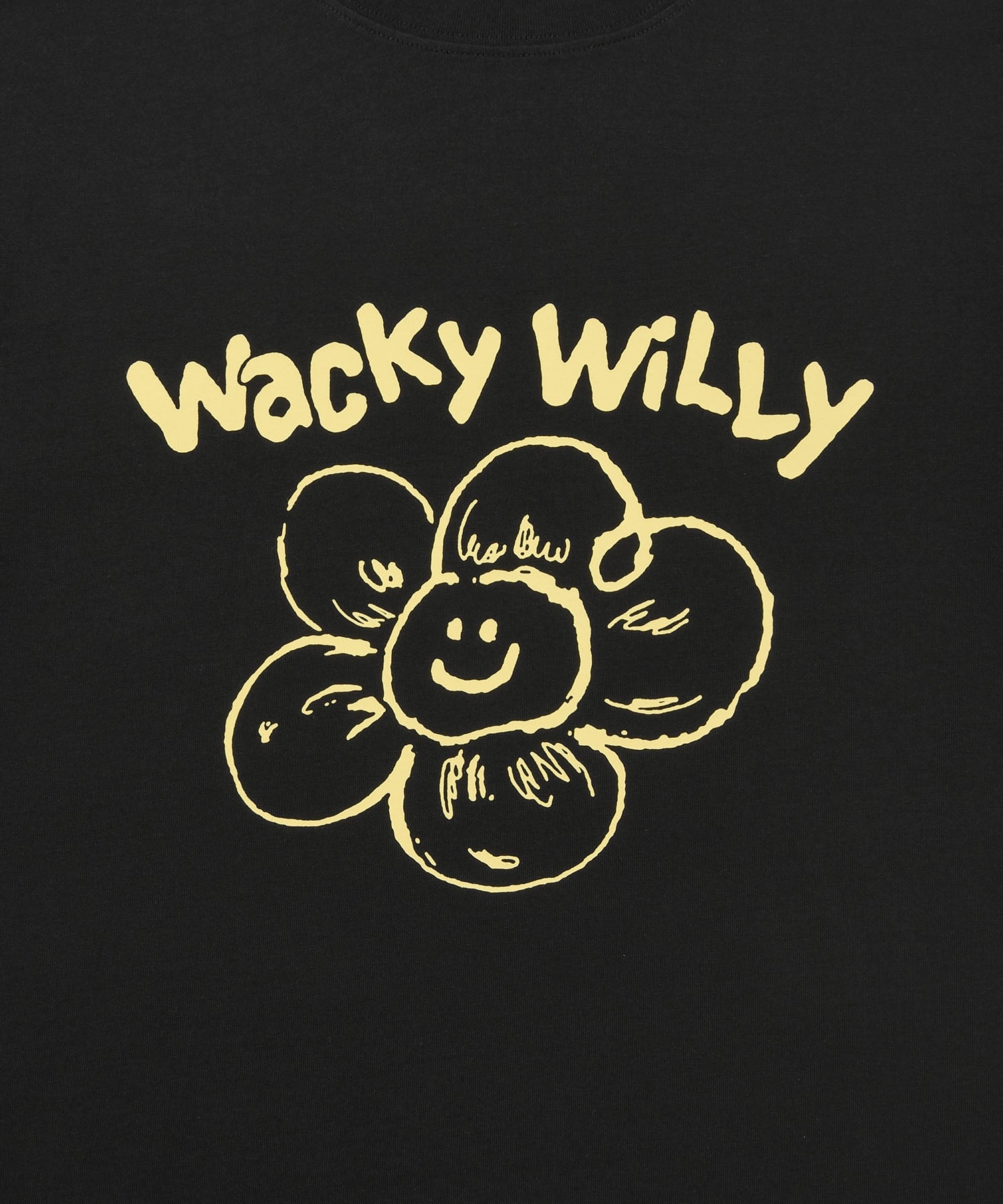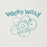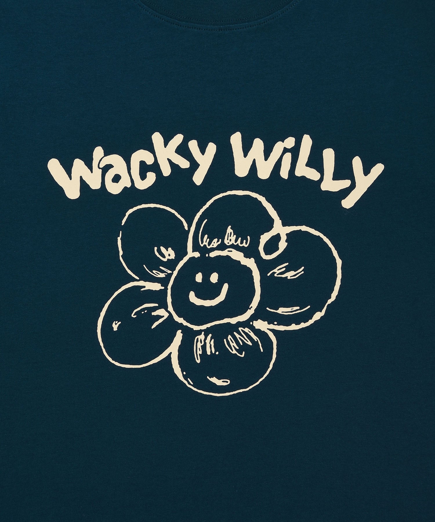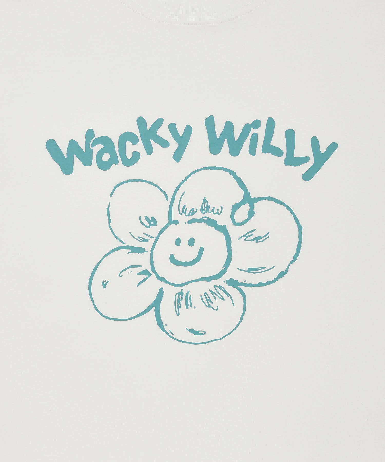 「リリー」と「ワッキーウィリー」のフォントを組み合わせたオリジナルグラフィックが、コーディネートにさりげないアクセントをプラスしてくれます。