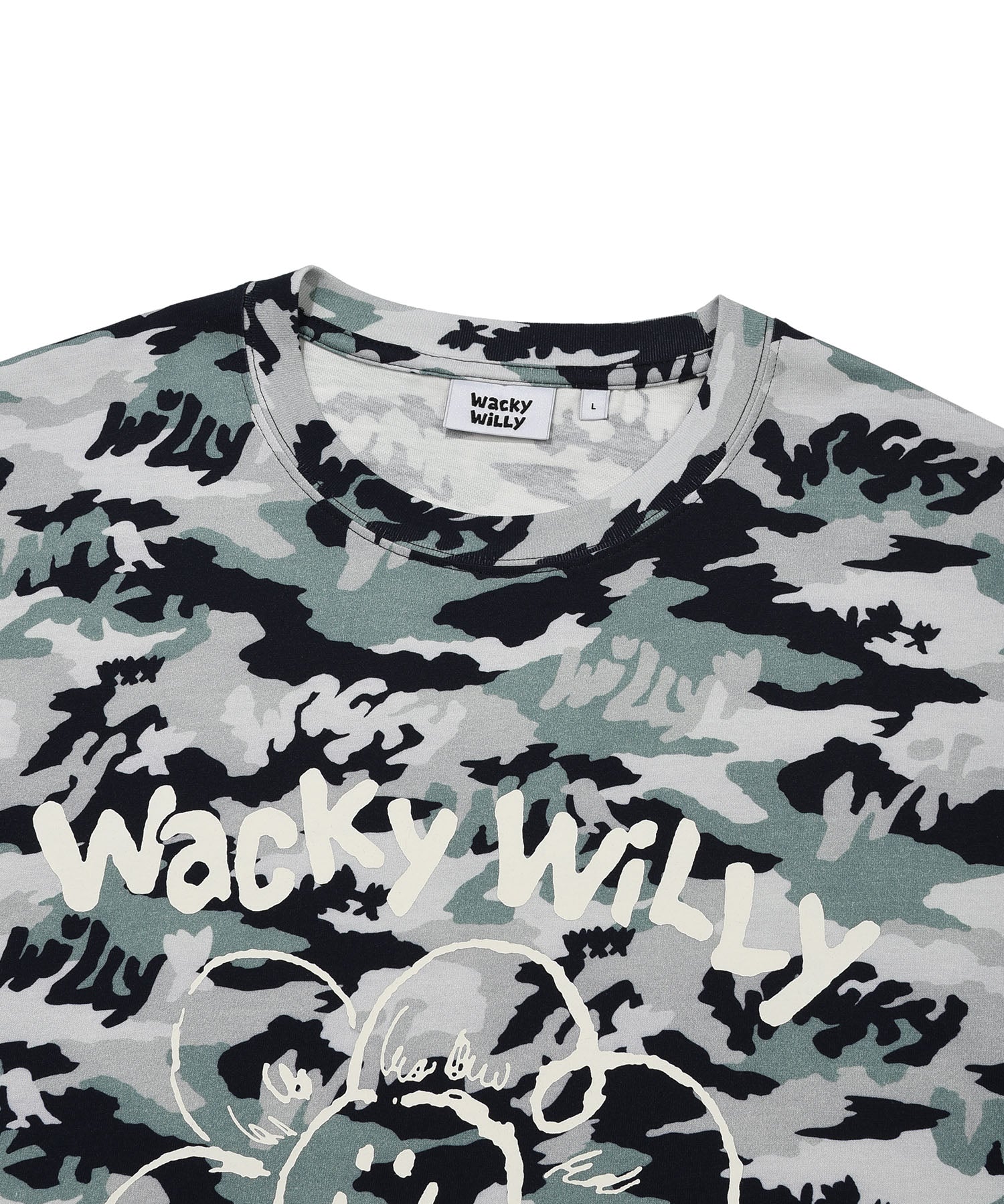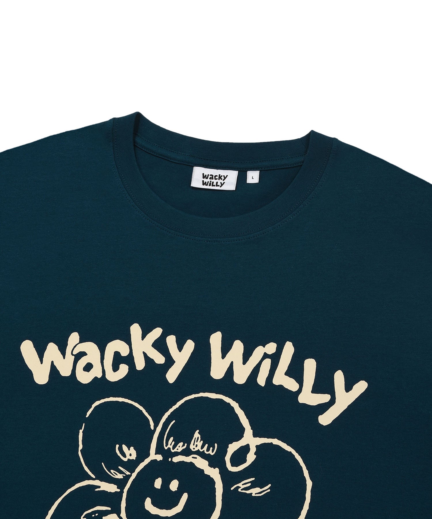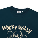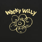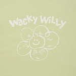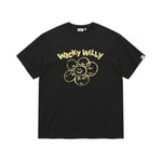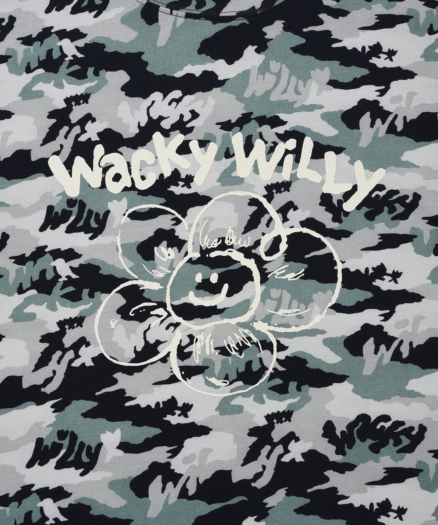 「リリー」と「ワッキーウィリー」のフォントを組み合わせたオリジナルグラフィックが、コーディネートにさりげないアクセントをプラスしてくれます。