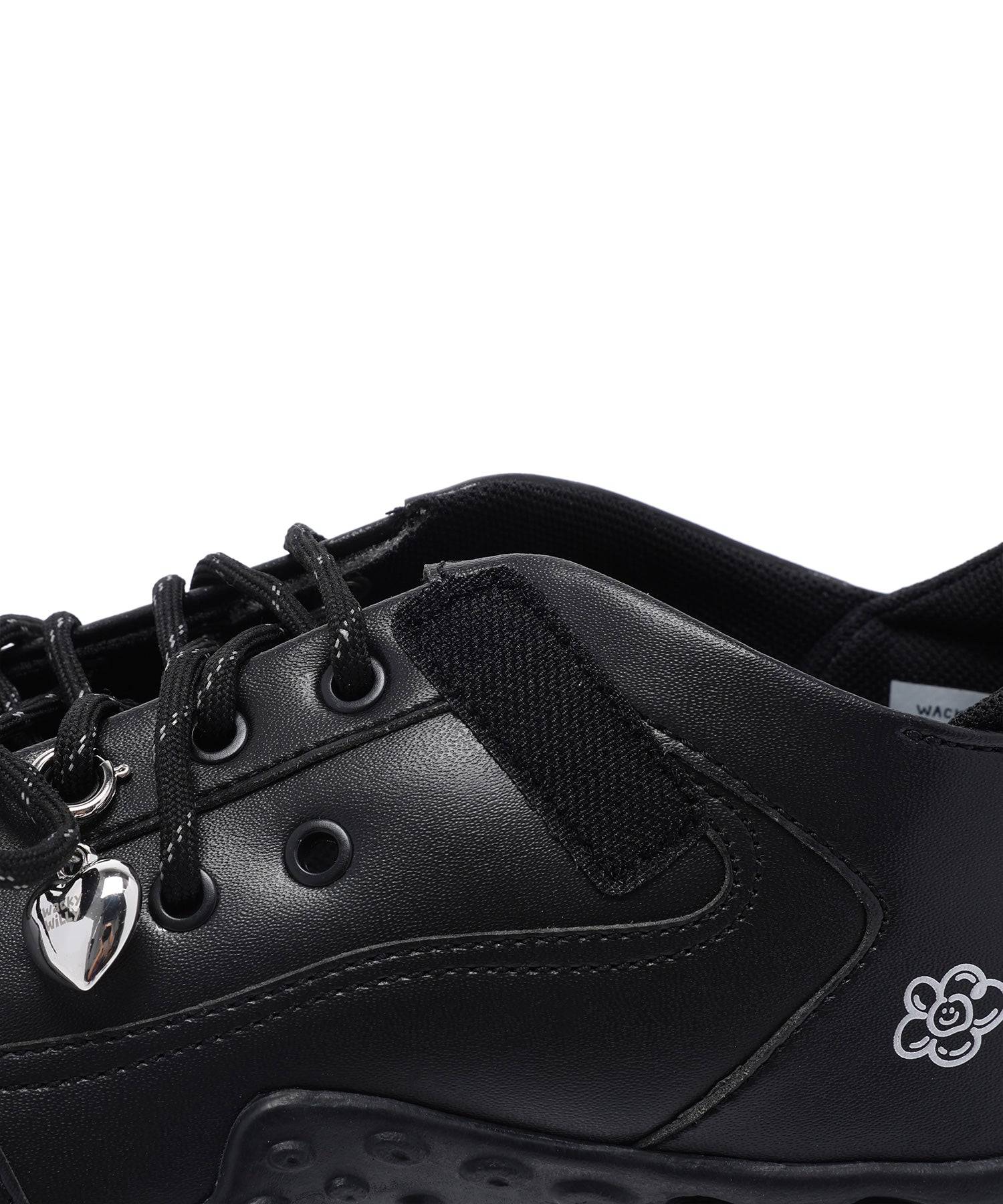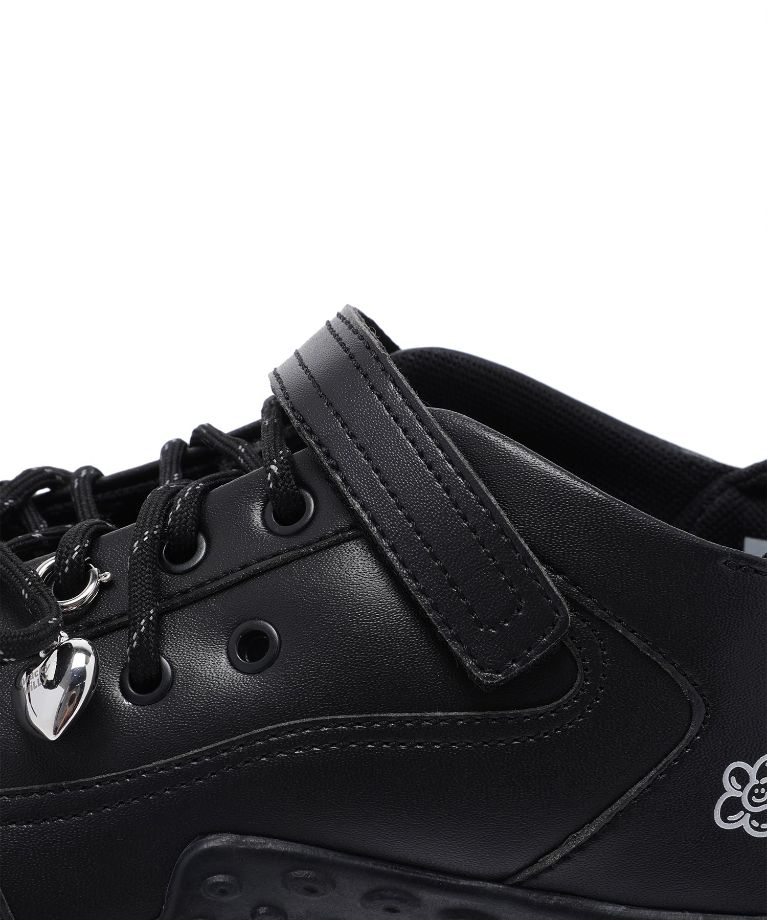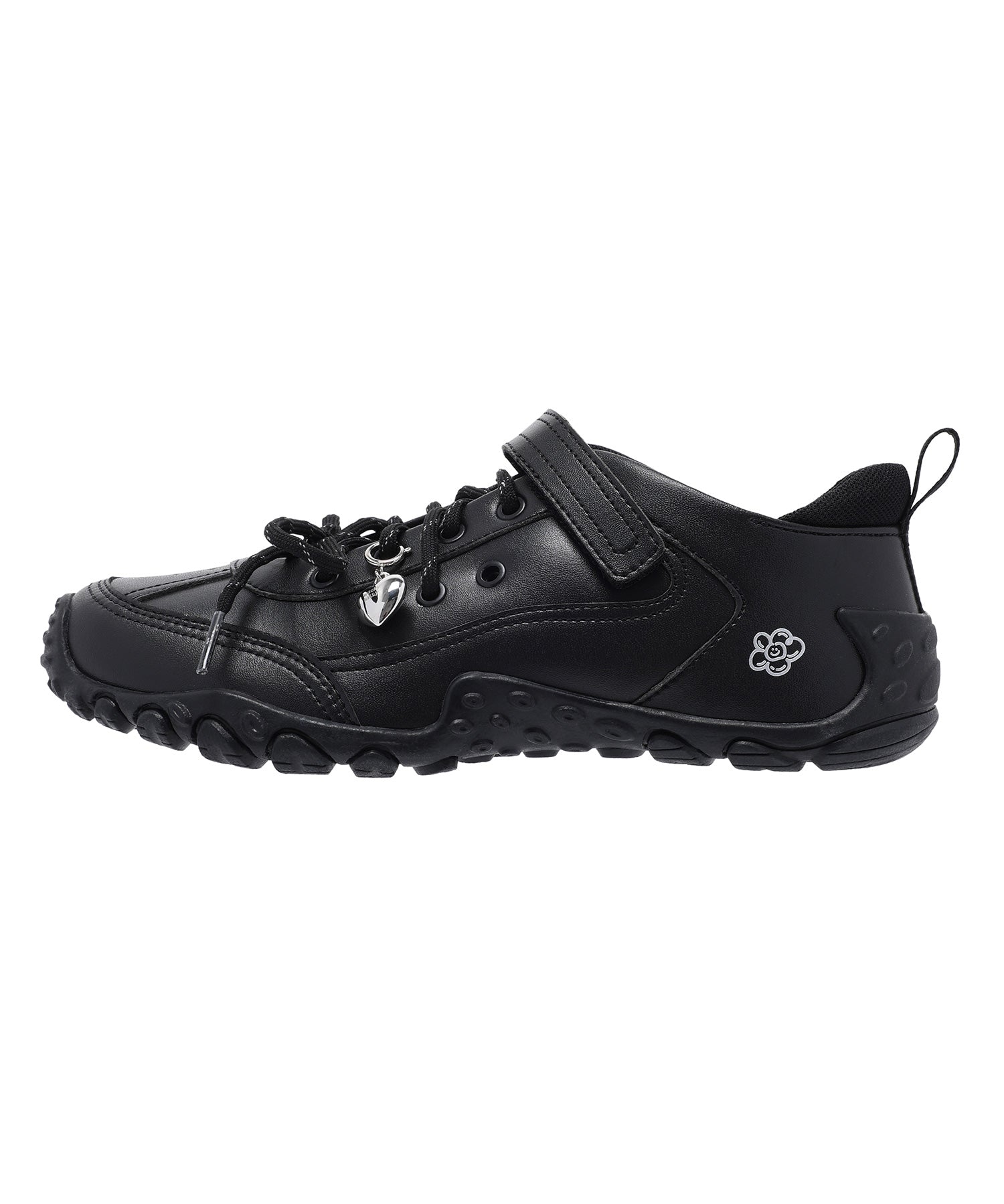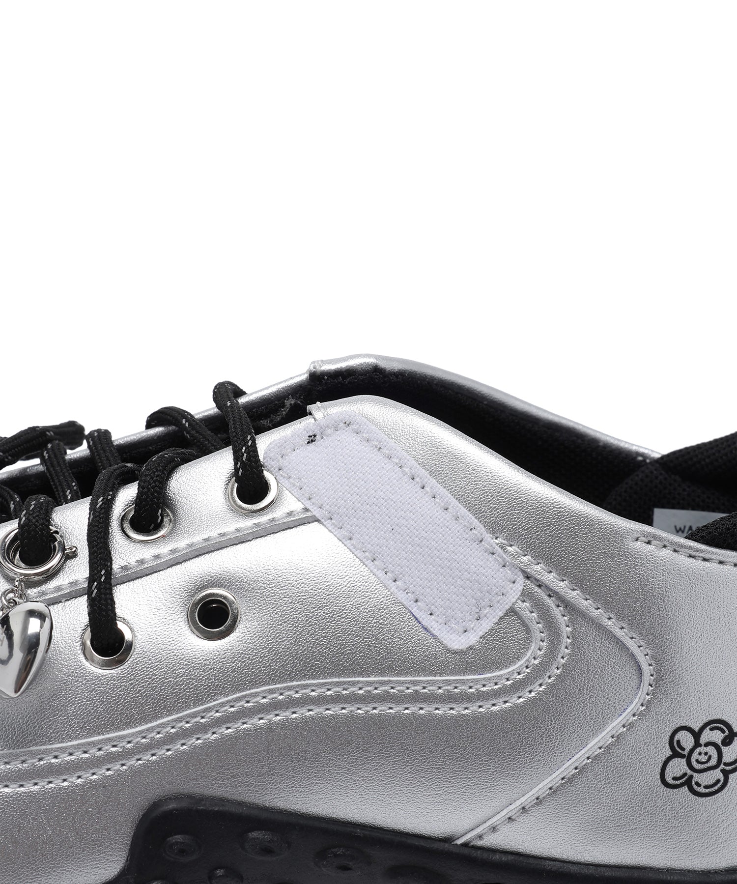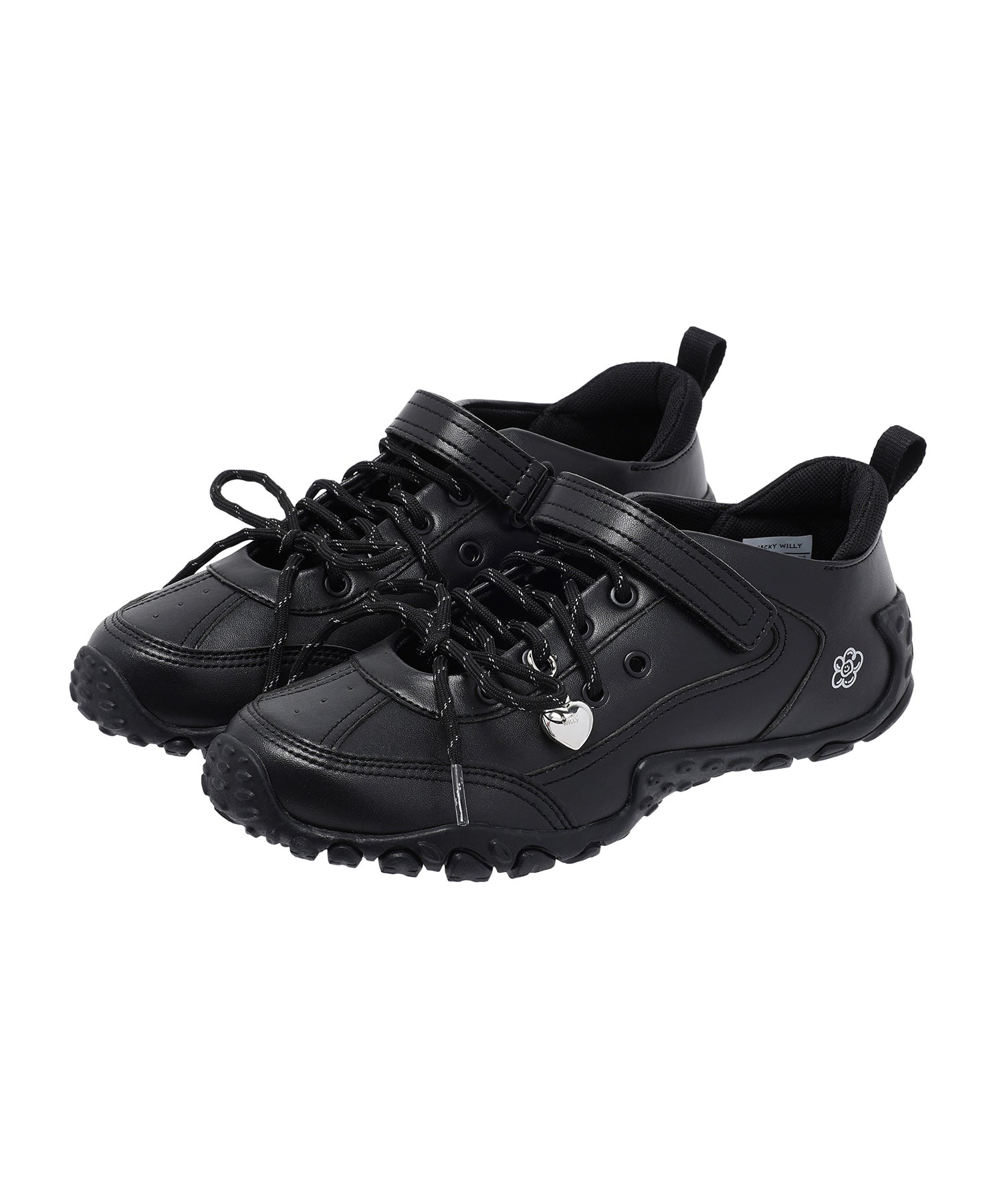左足にはハート型のシューズチャームを1点あしらい、遊び心のあるアクセントをプラスしています(左足のみの仕様)。