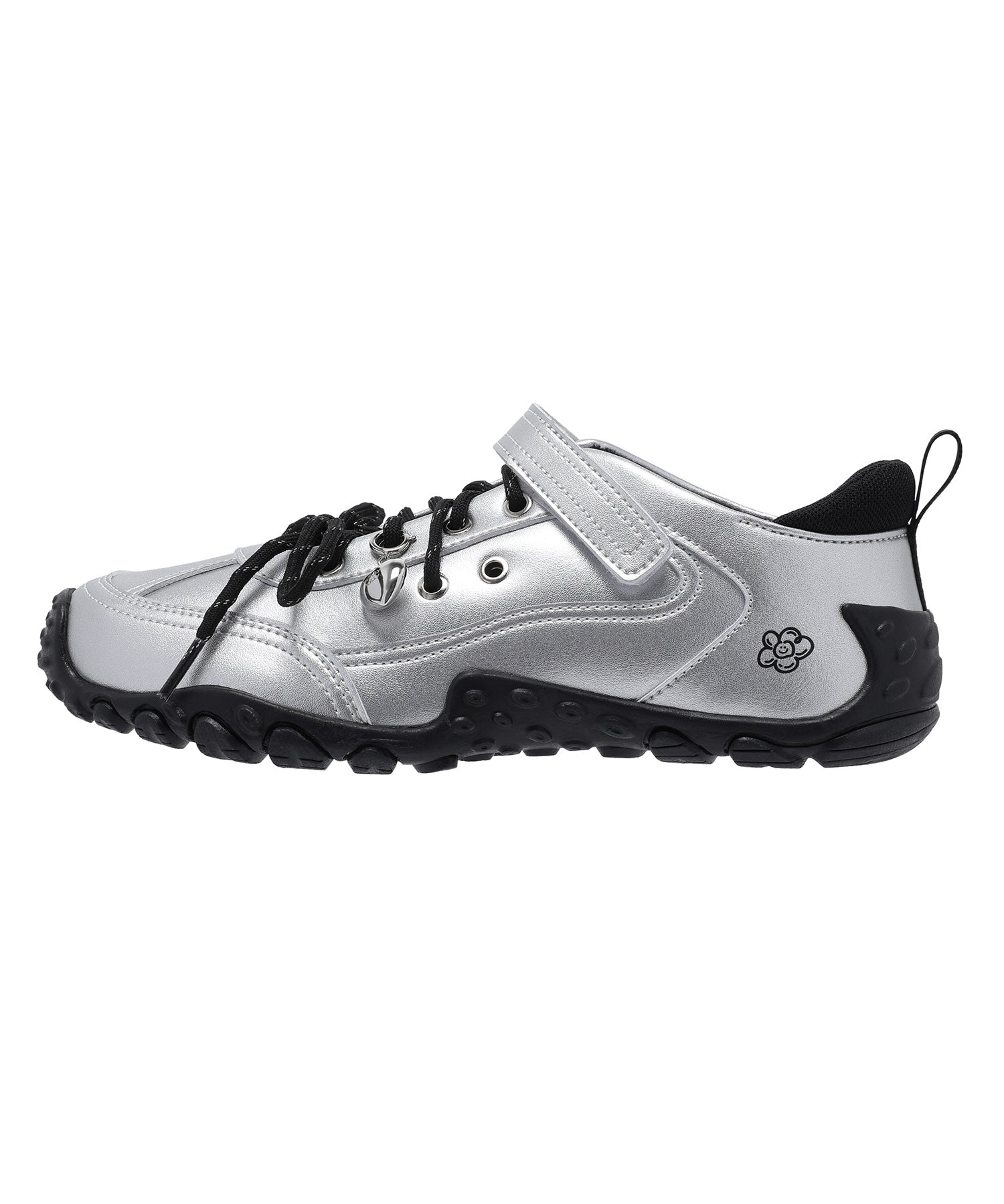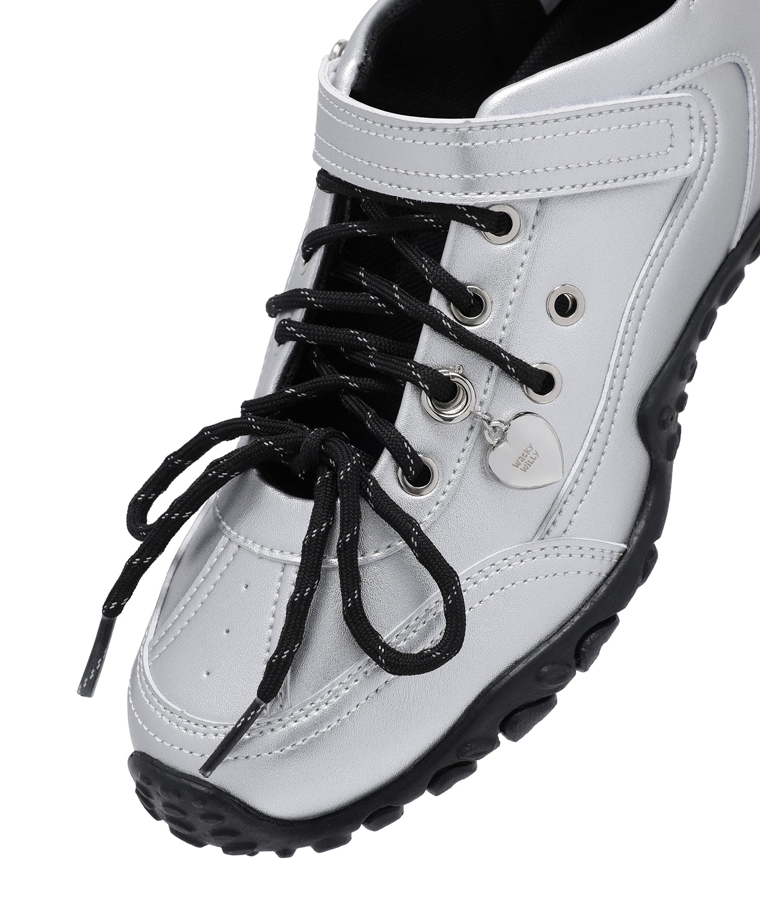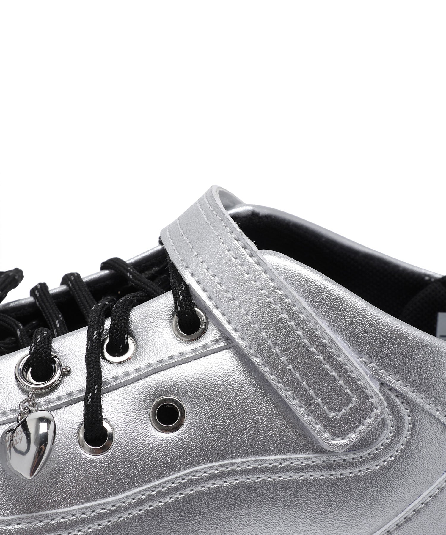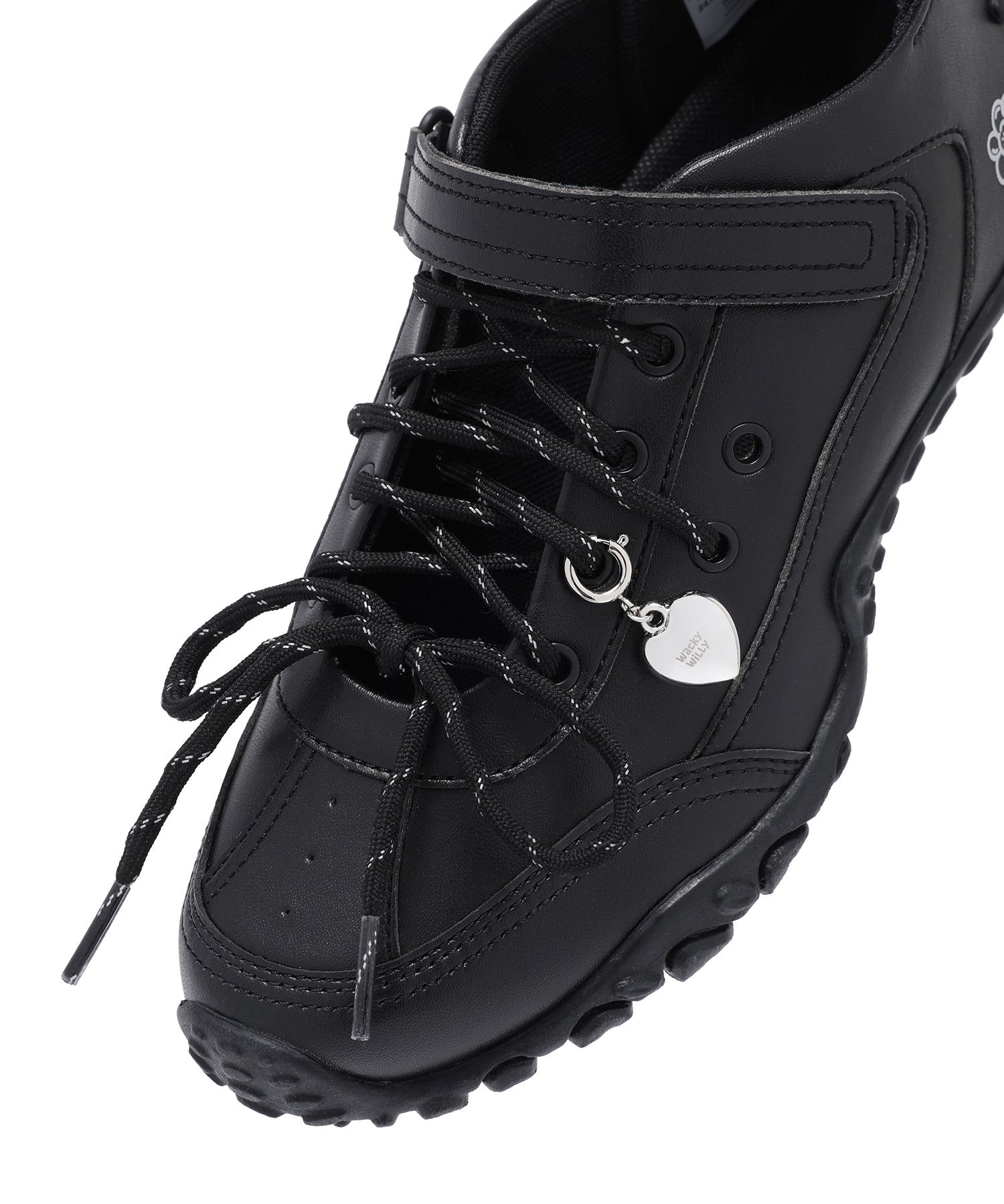左足にはハート型のシューズチャームを1点あしらい、遊び心のあるアクセントをプラスしています(左足のみの仕様)。