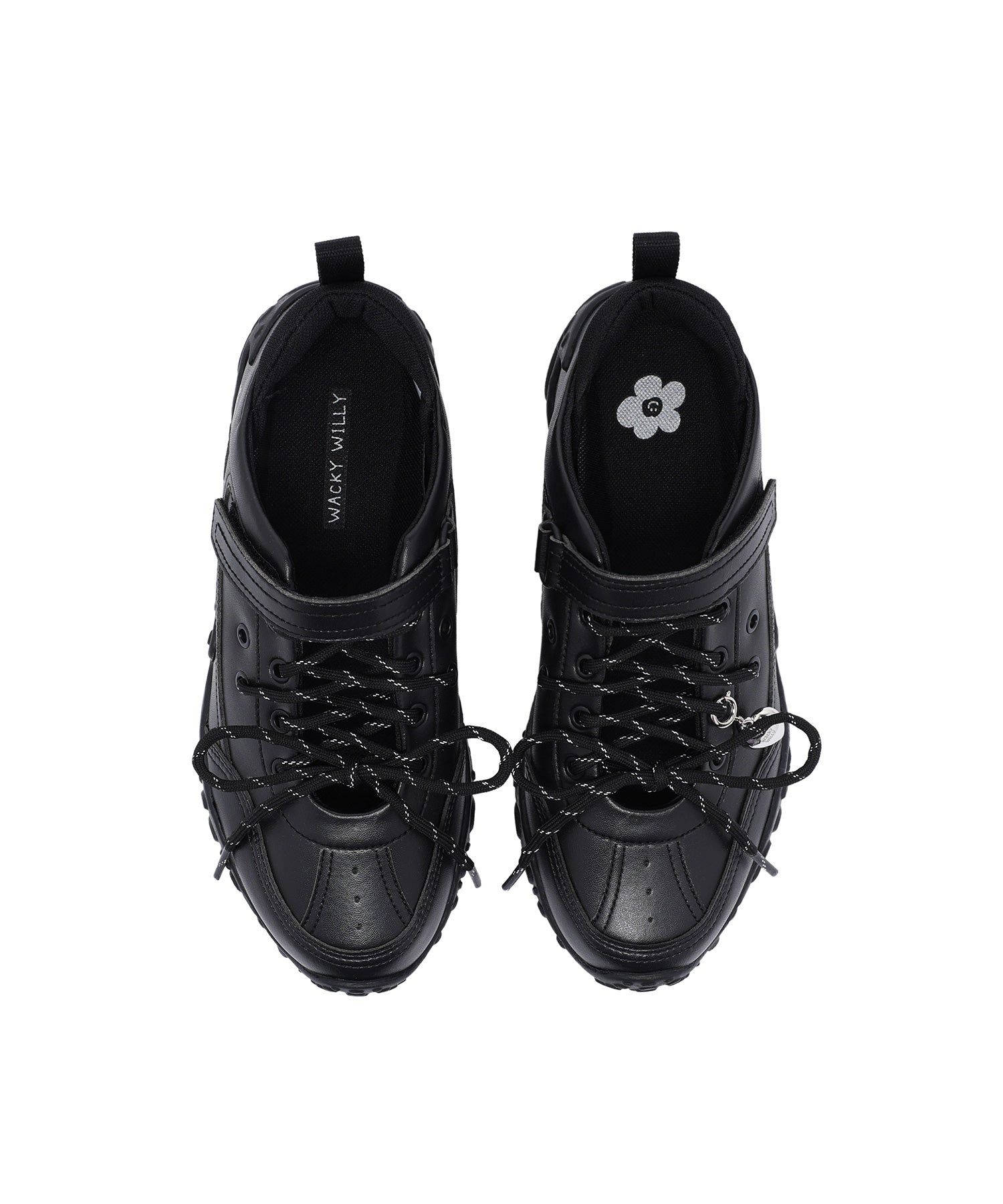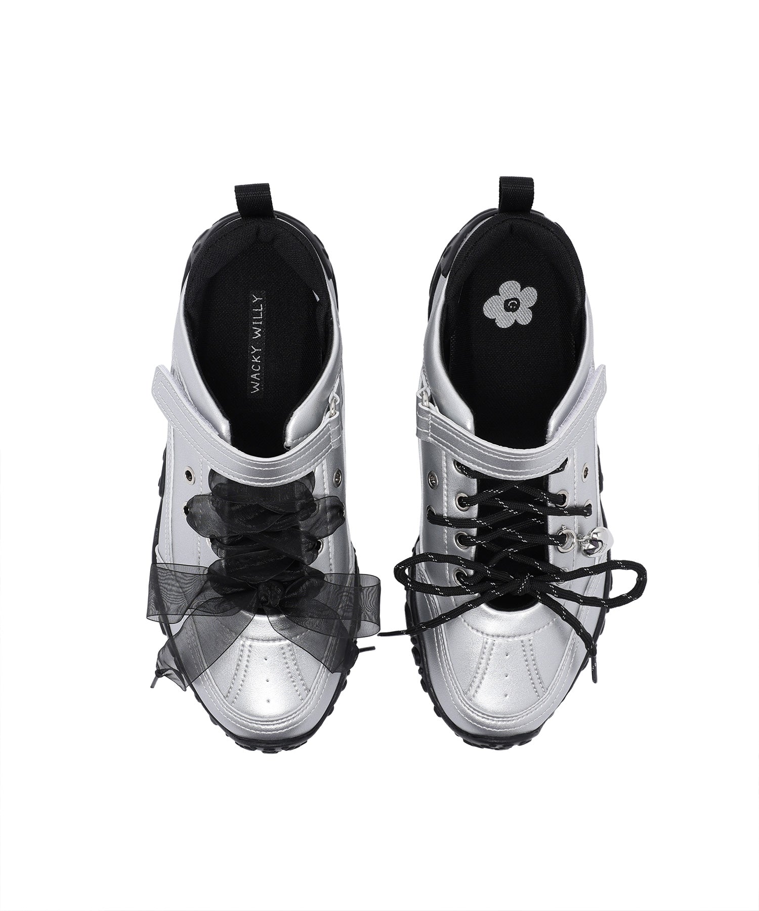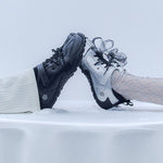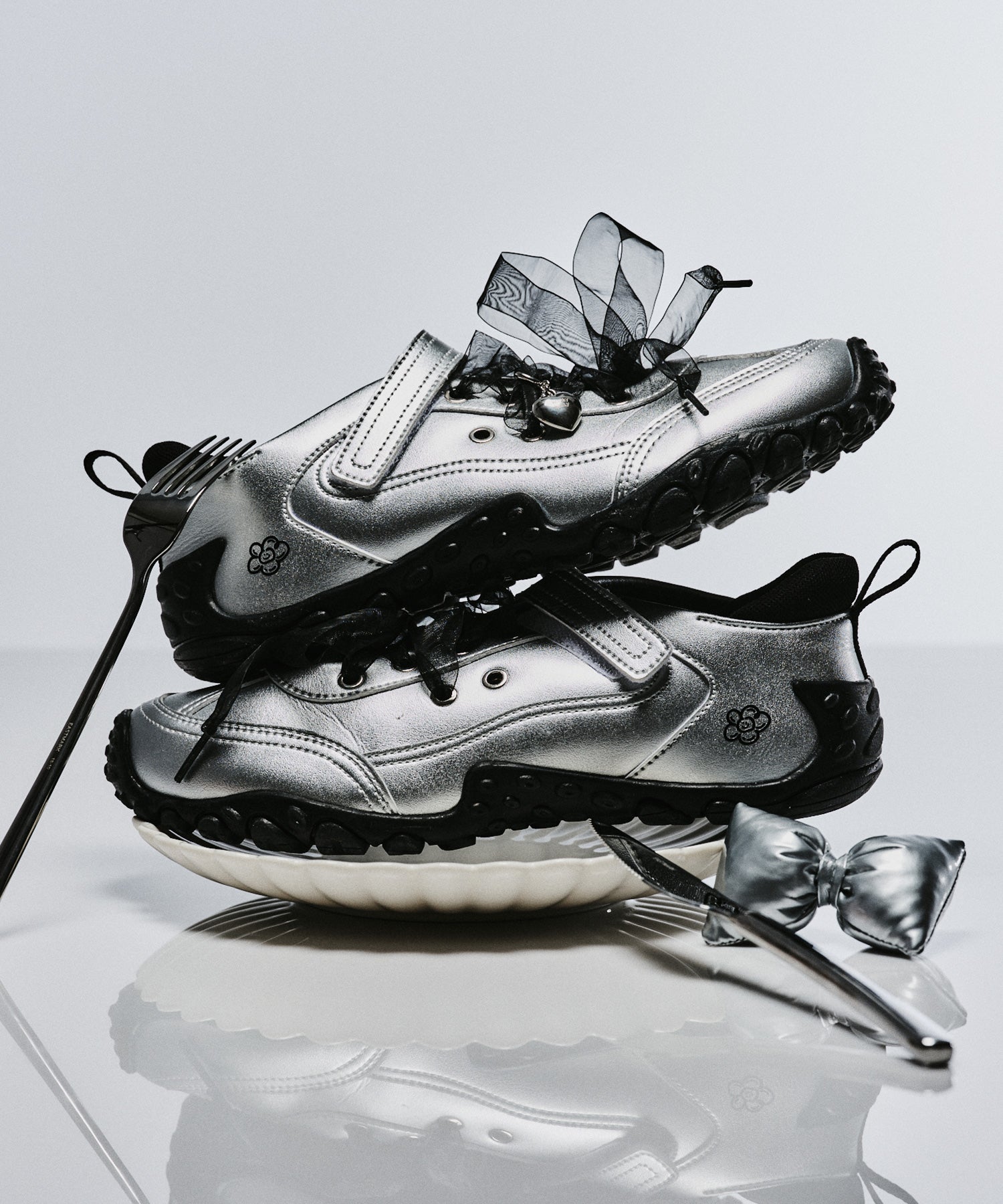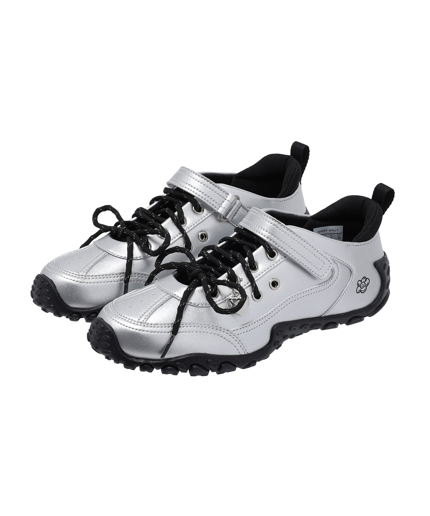左足にはハート型のシューズチャームを1点あしらい、遊び心のあるアクセントをプラスしています(左足のみの仕様)。