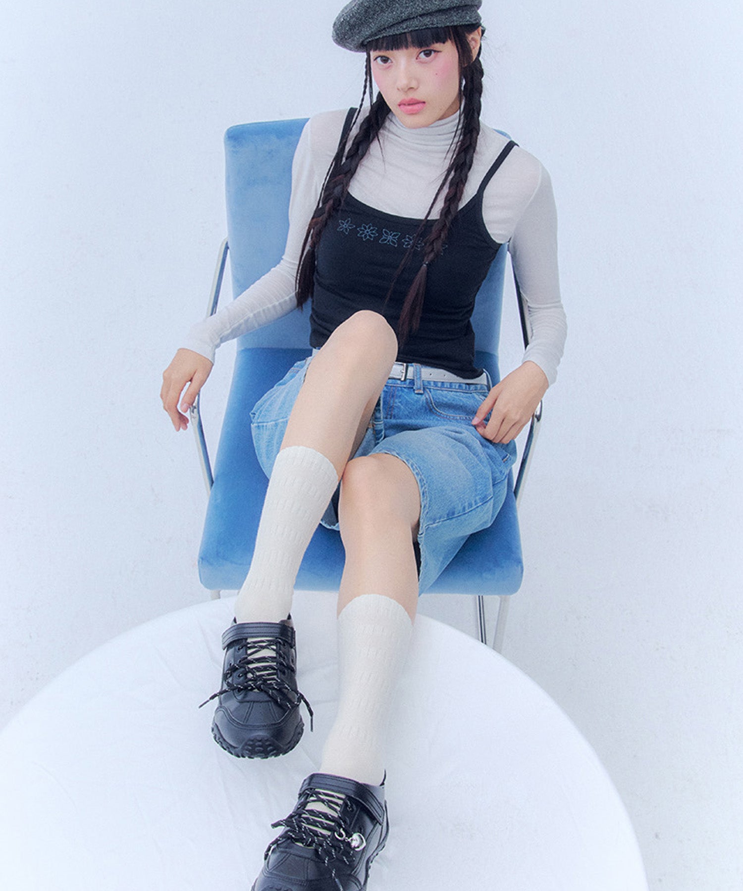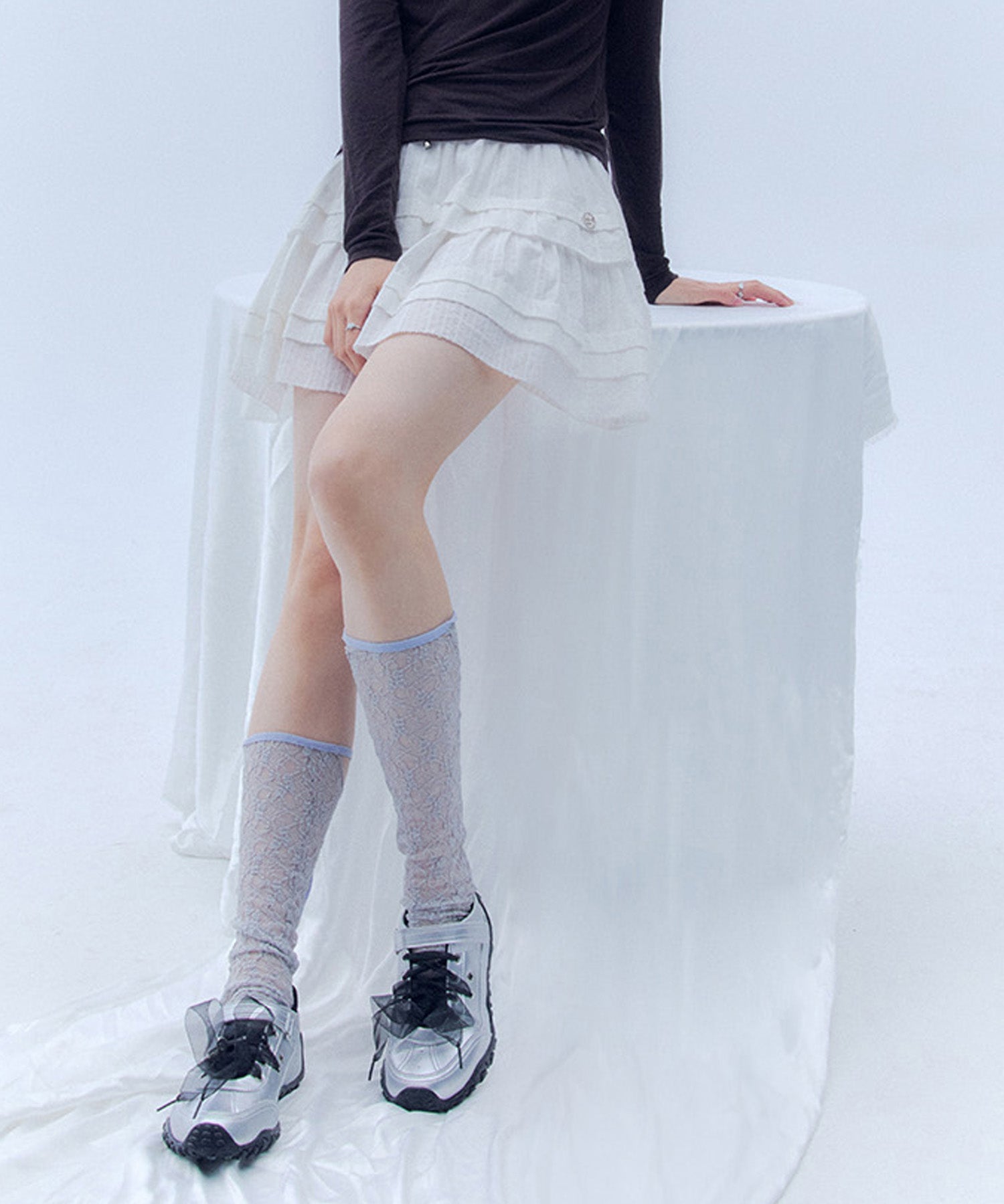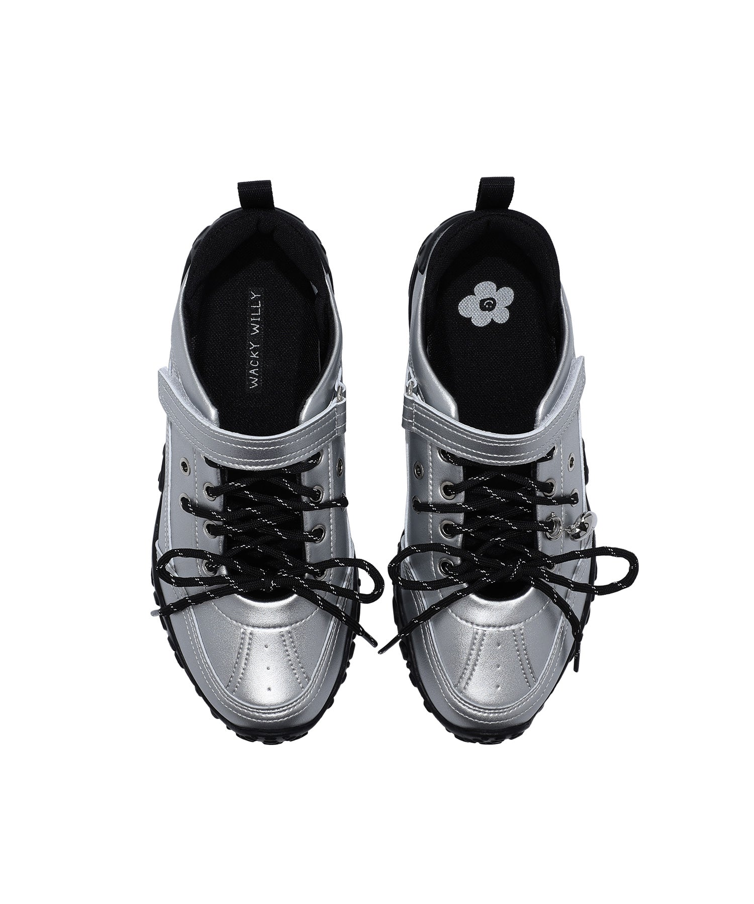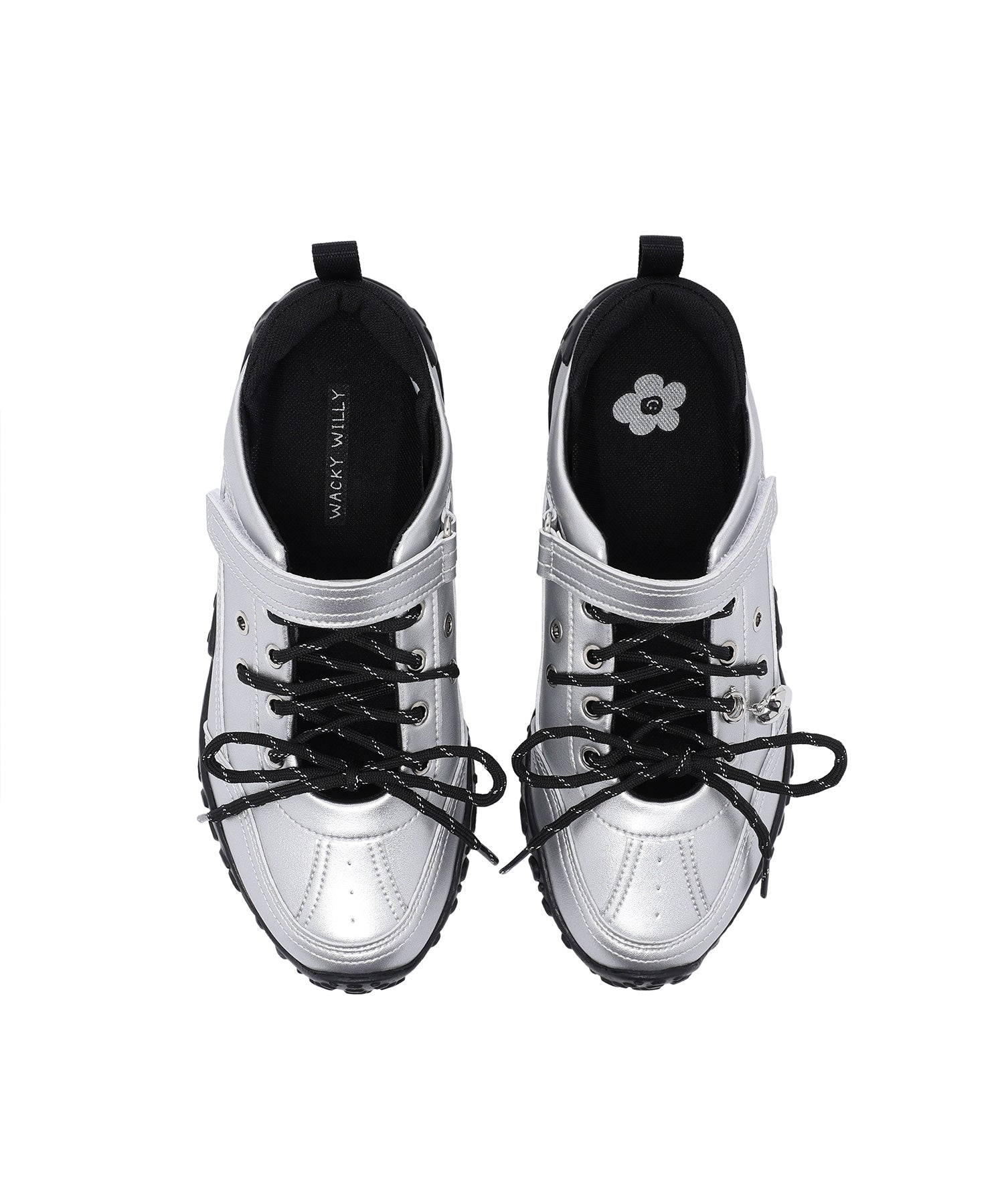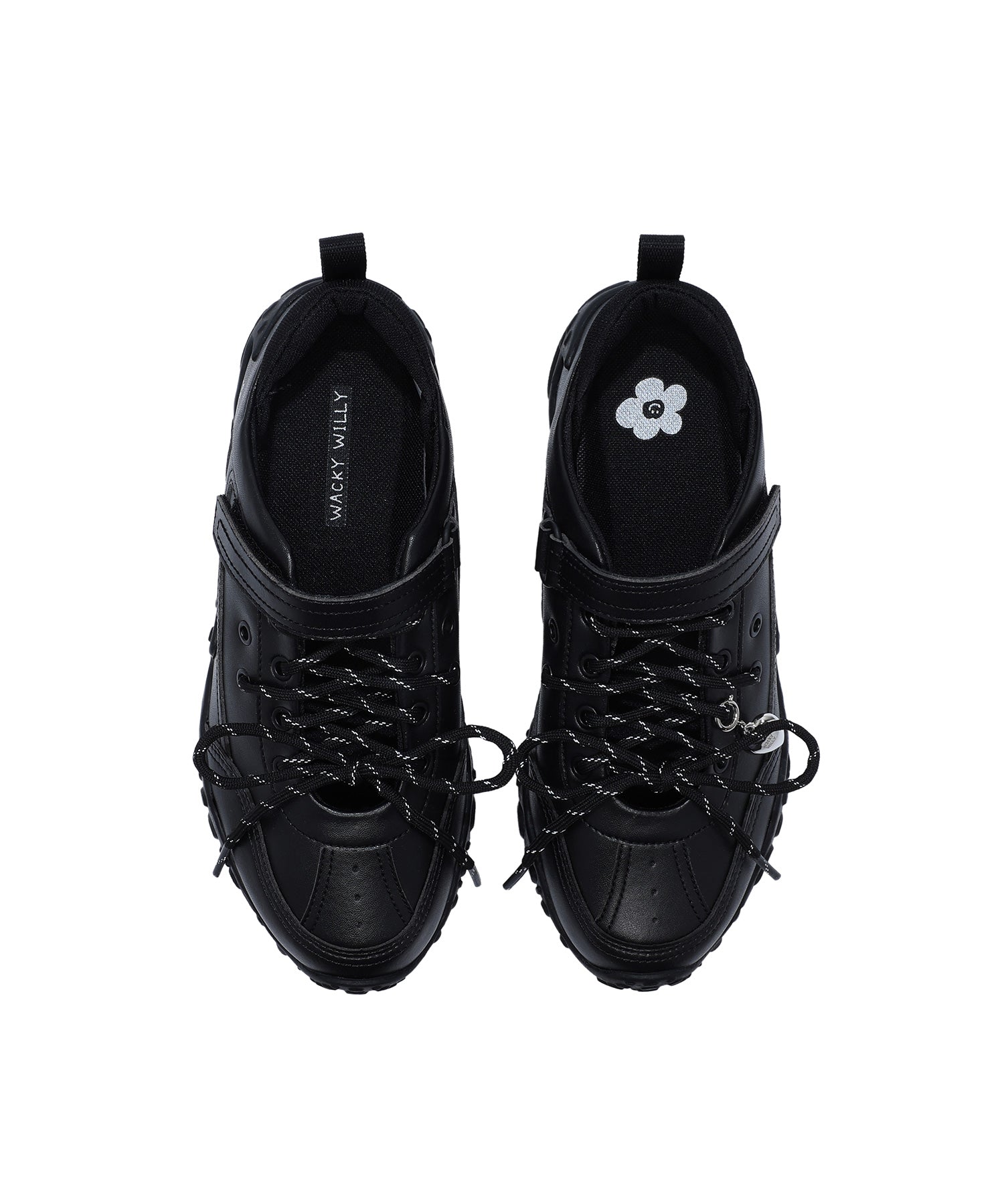 左足にはハート型のシューズチャームを1点あしらい、遊び心のあるアクセントをプラスしています(左足のみの仕様)。