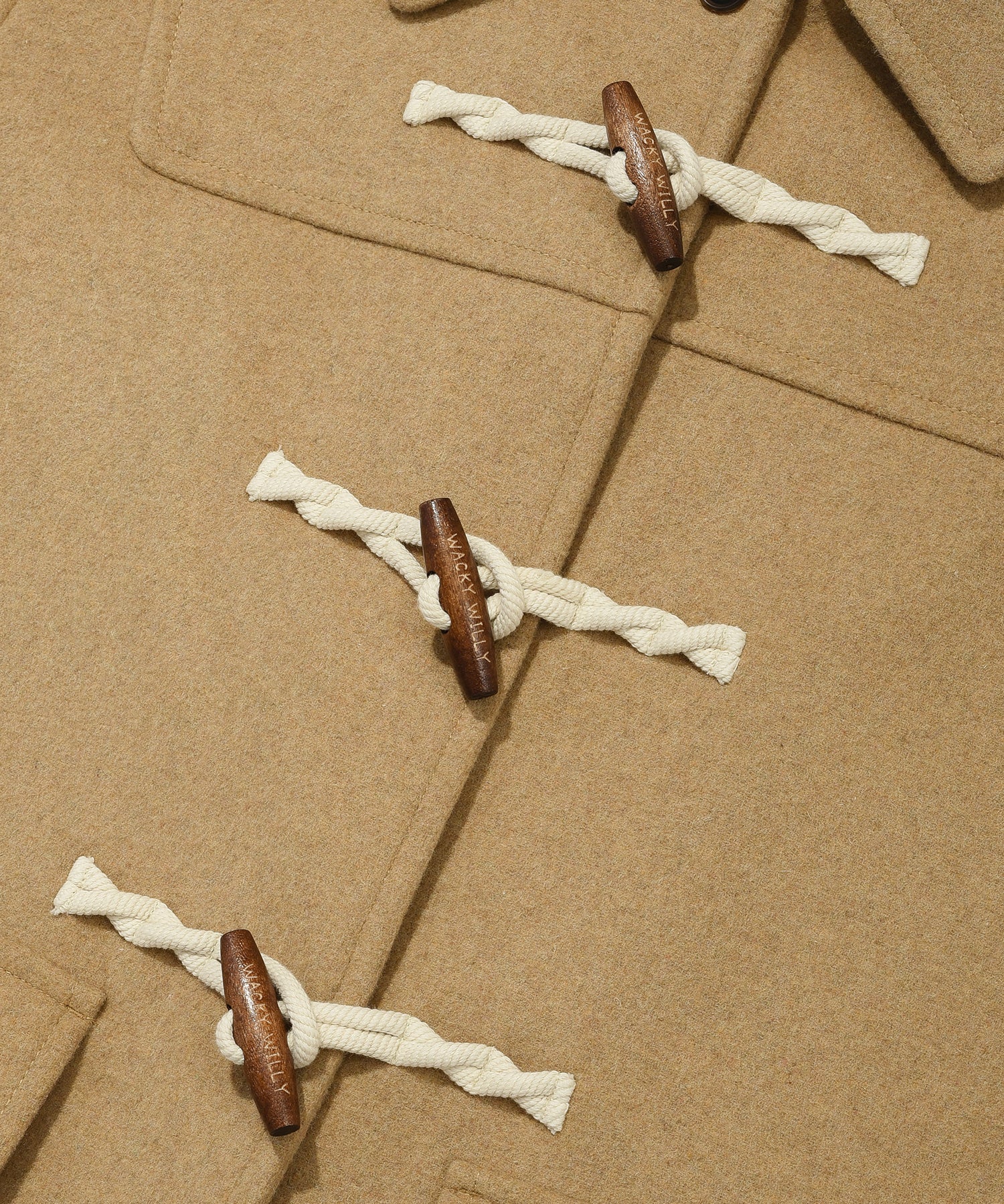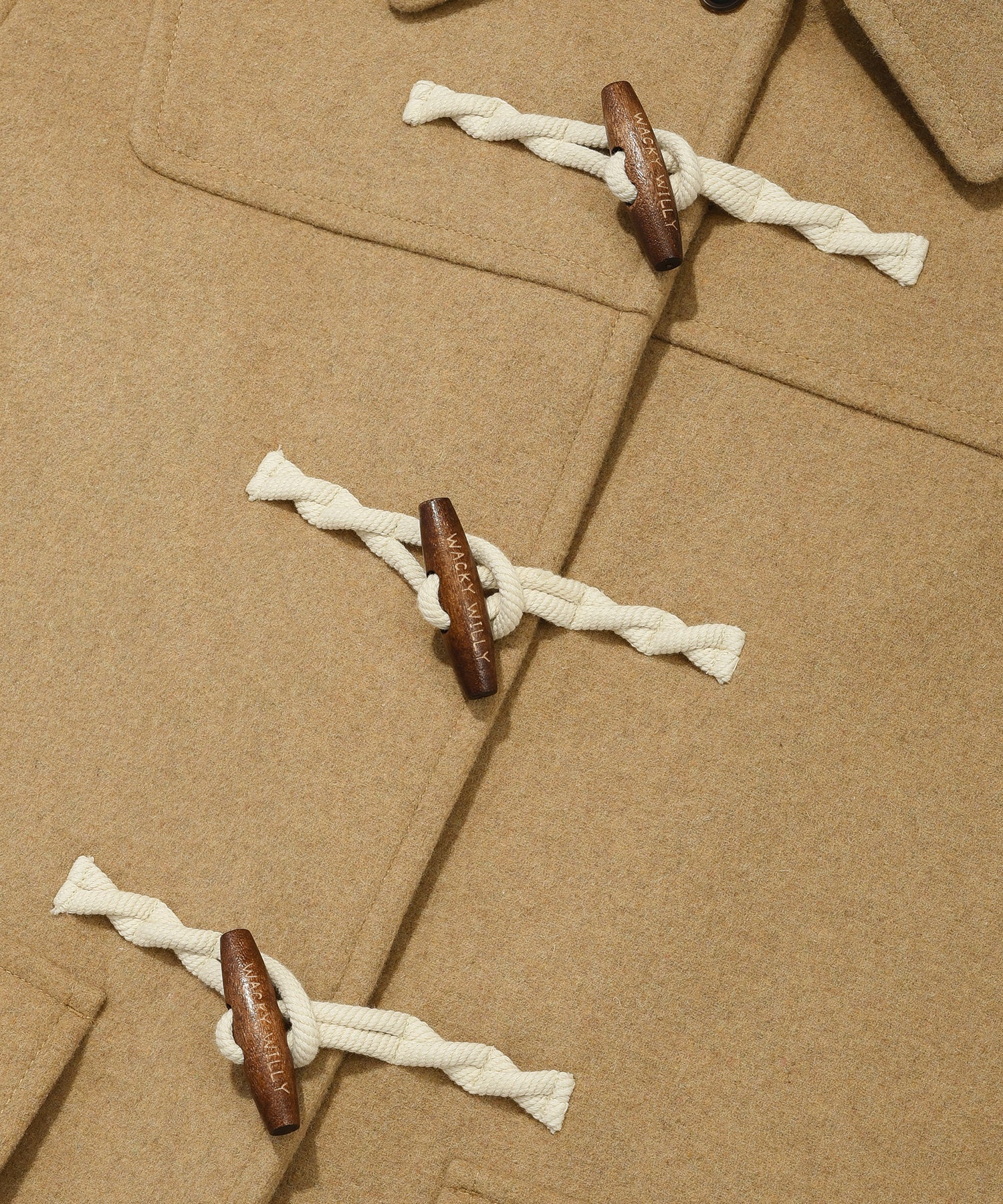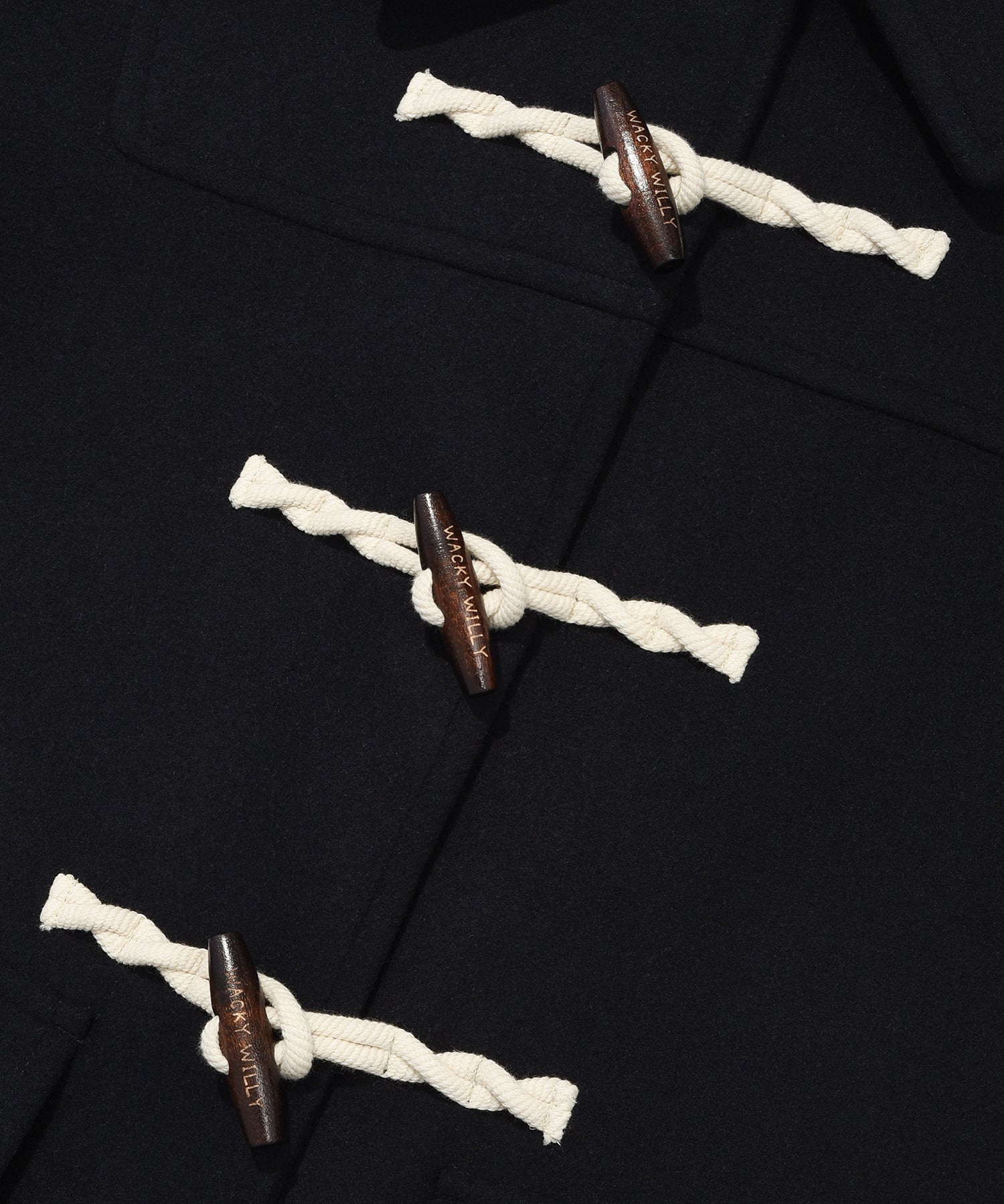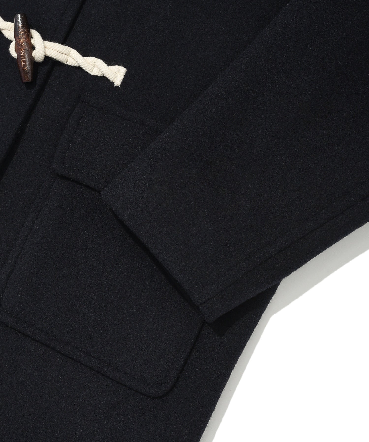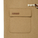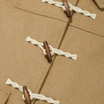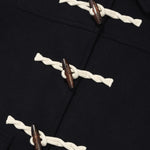 ブランドロゴが刻印されたトグルボタンを採用し、内側のホックでスムーズに開閉可能です。