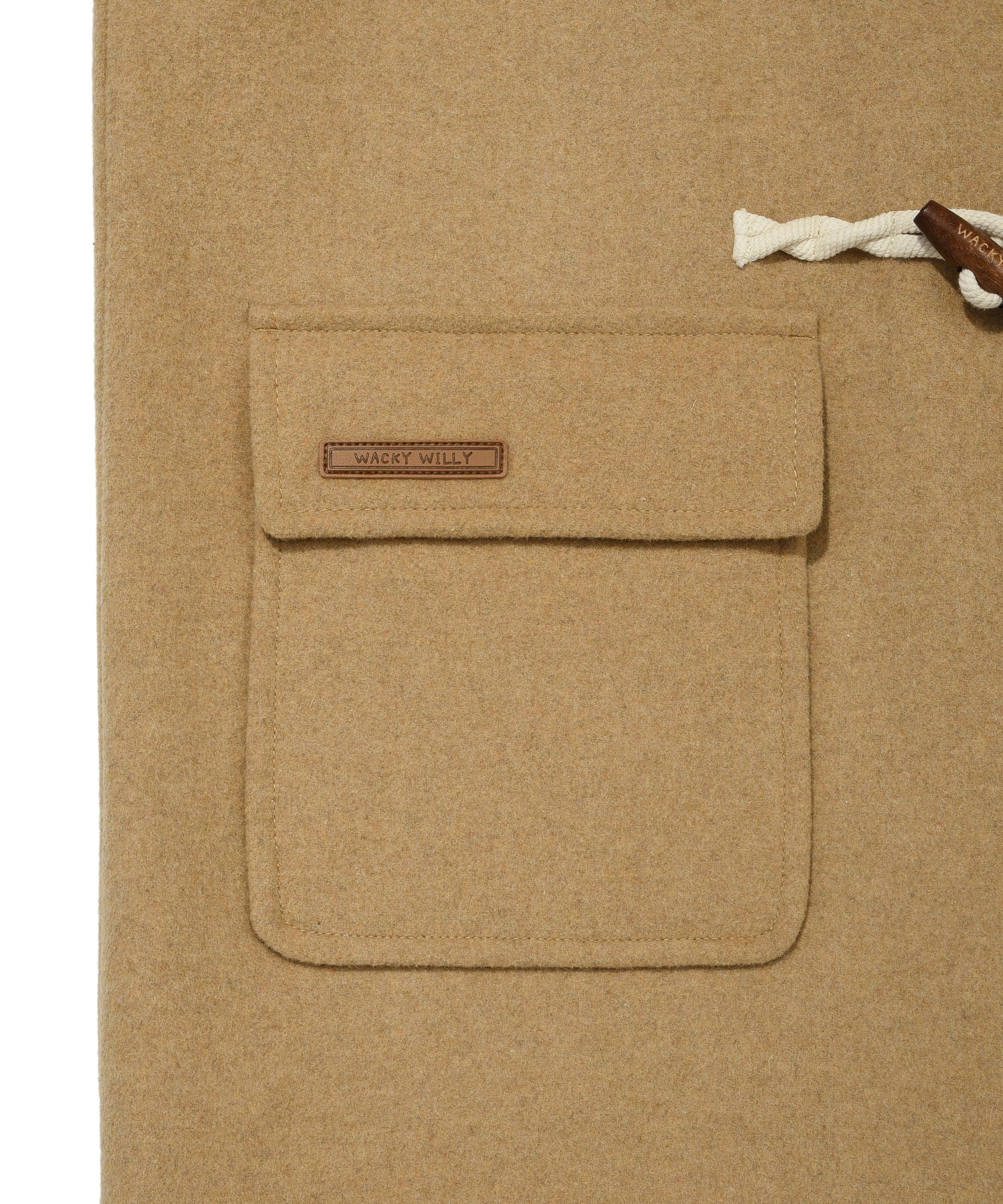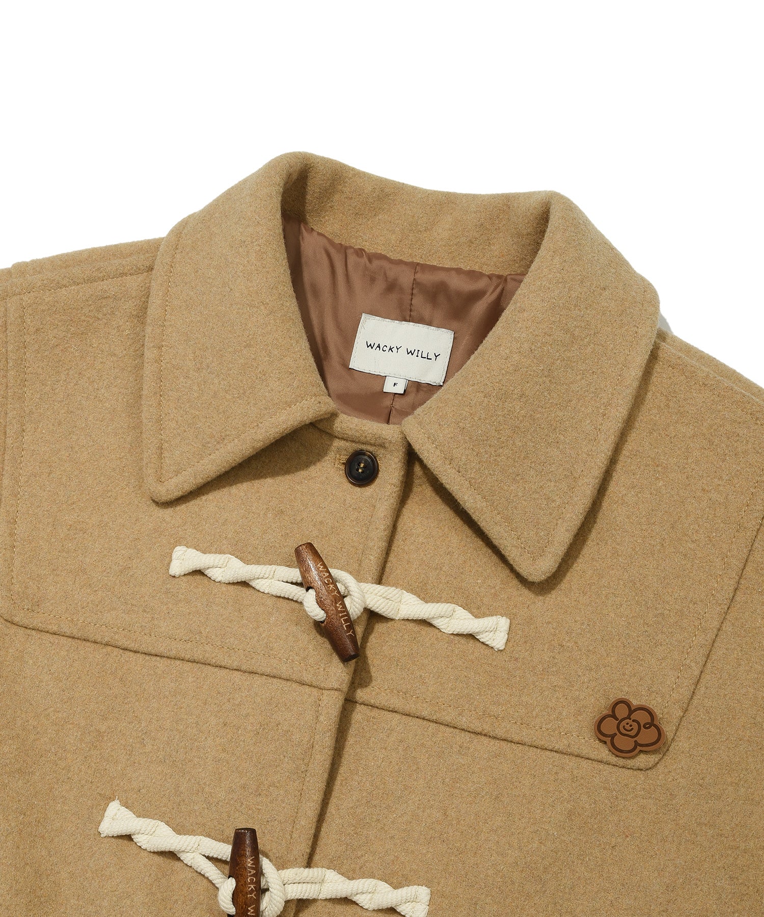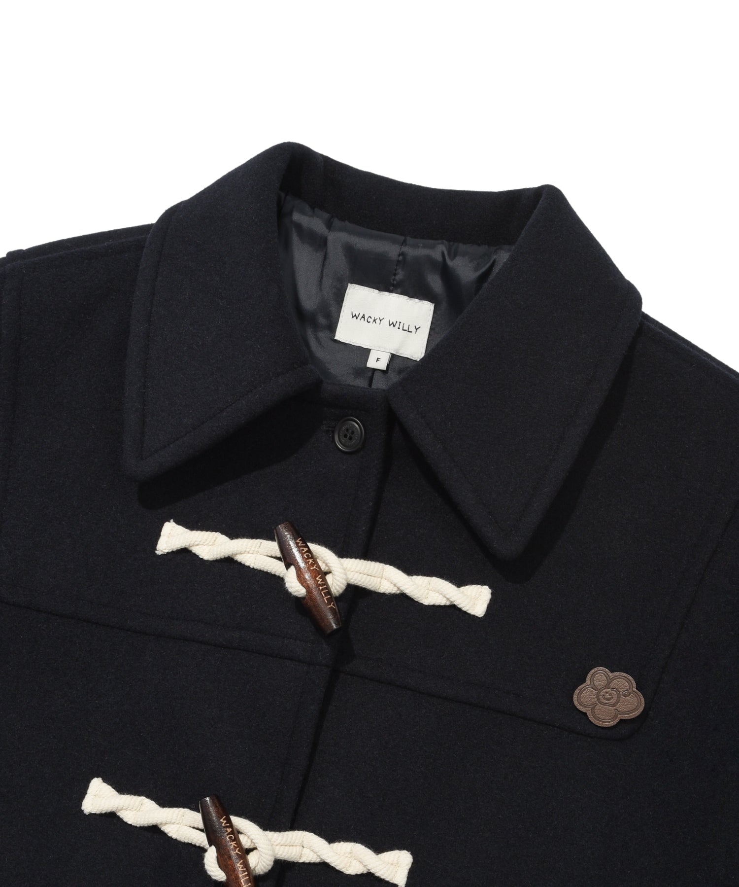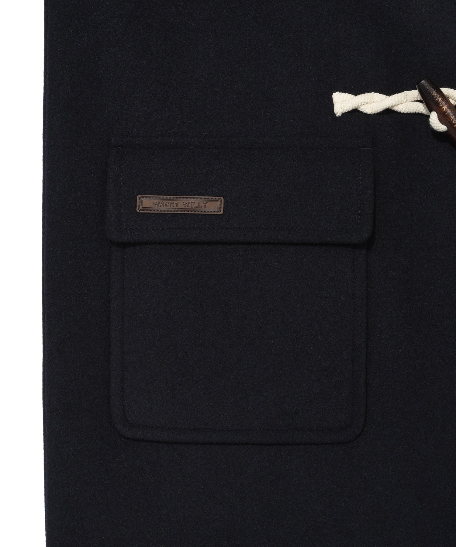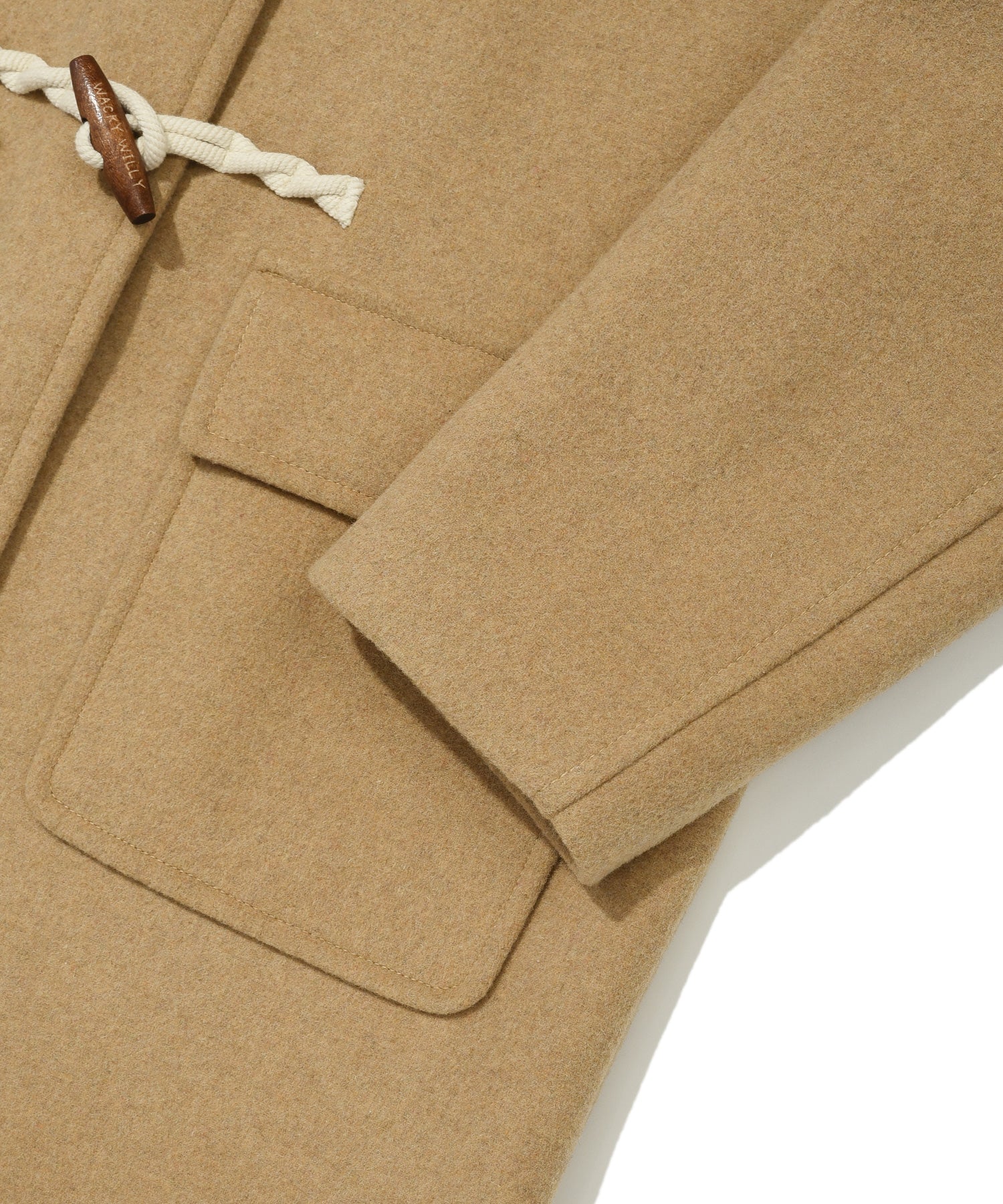 ブランドロゴが刻印されたトグルボタンを採用し、内側のホックでスムーズに開閉可能です。