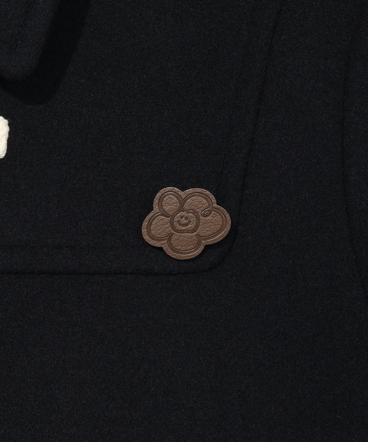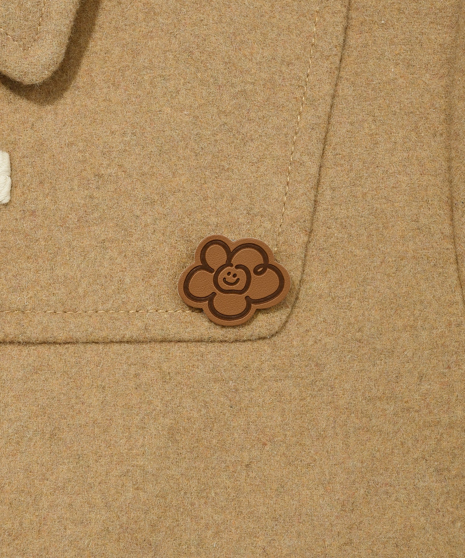 取り外し可能なリリーレザーブローチがスタイリングのアクセントになるウール混コート。